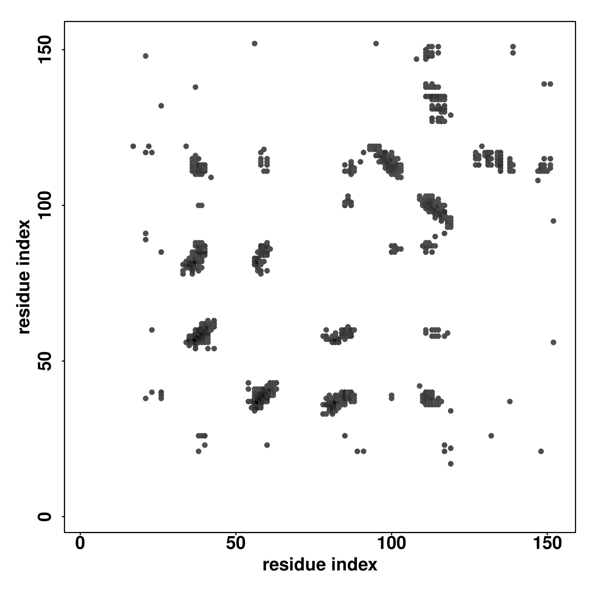 For the contact map, each dot represents a residue pair with predicted contact,