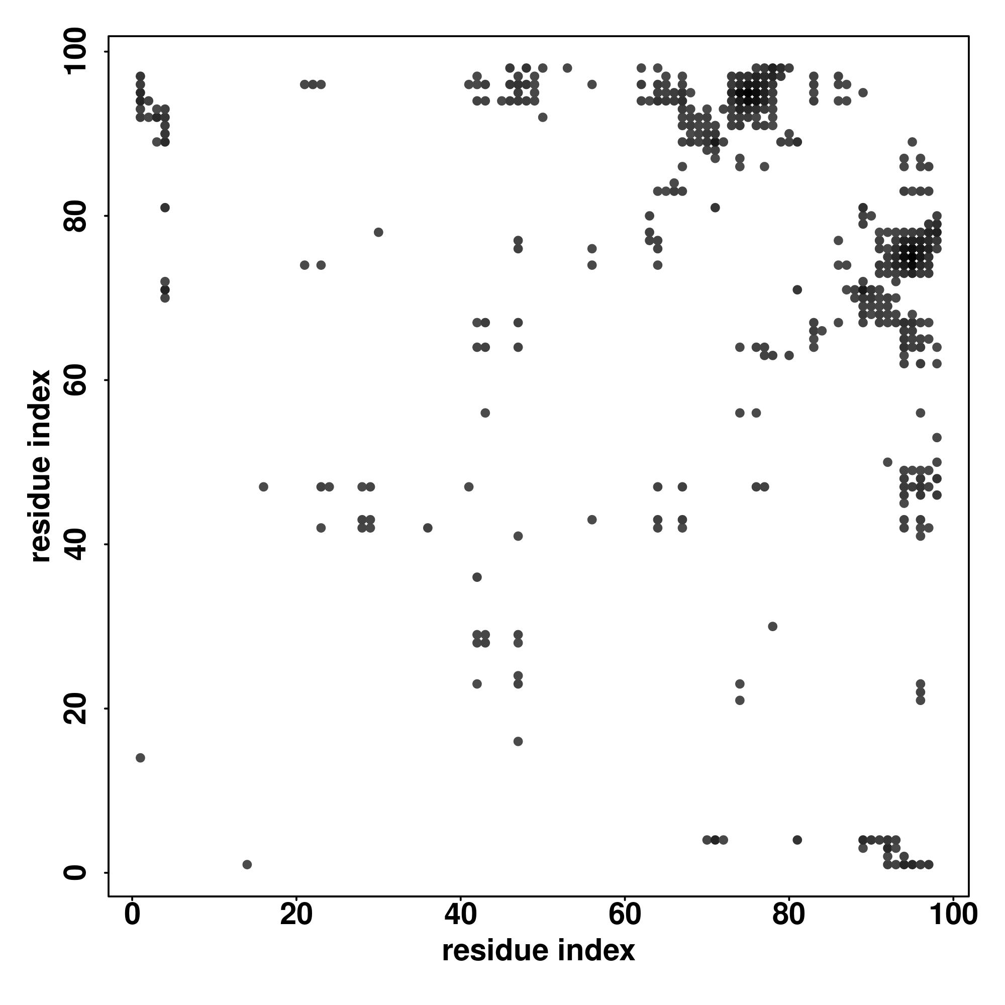 For the contact map, each dot represents a residue pair with predicted contact,