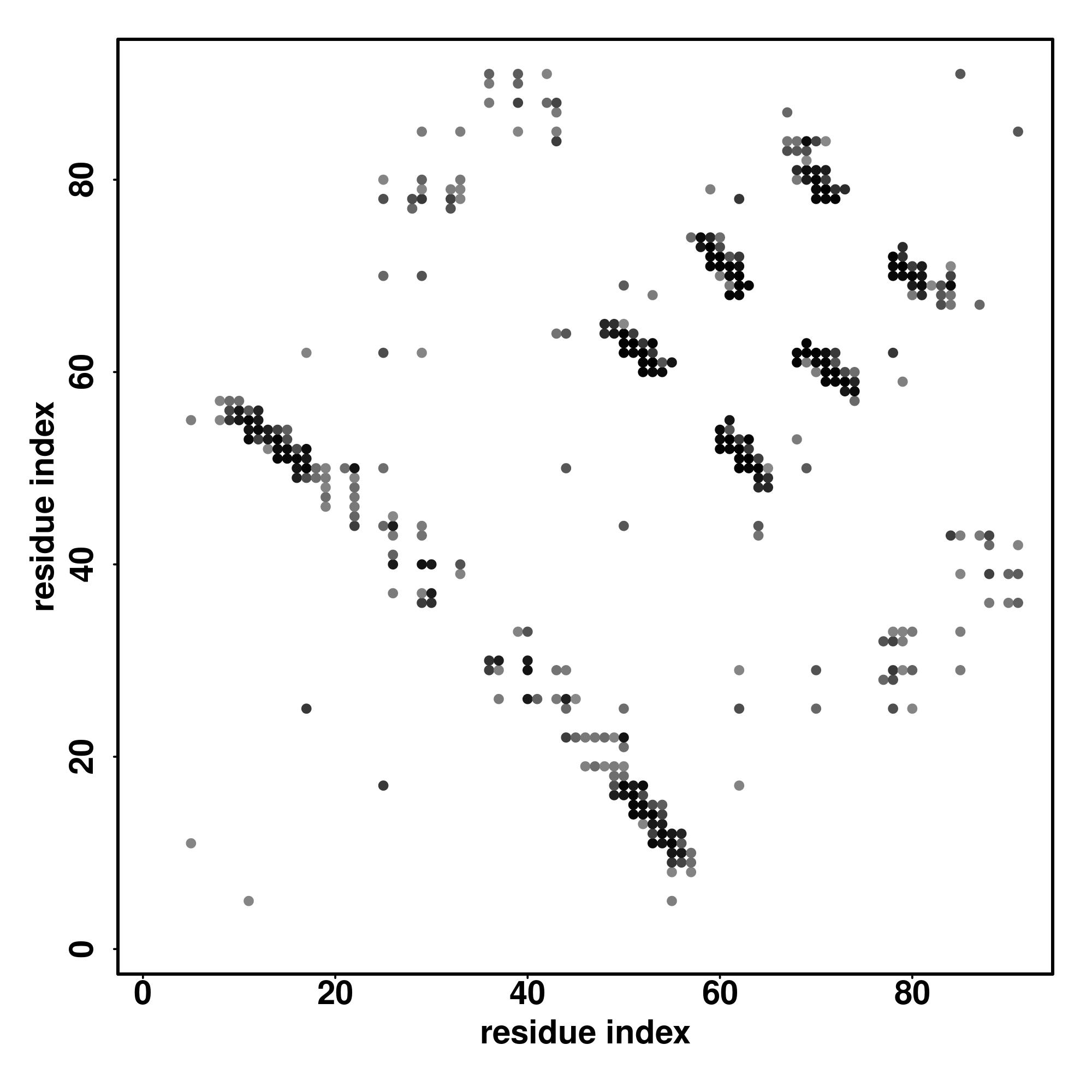 For the contact map, each dot represents a residue pair with predicted contact,