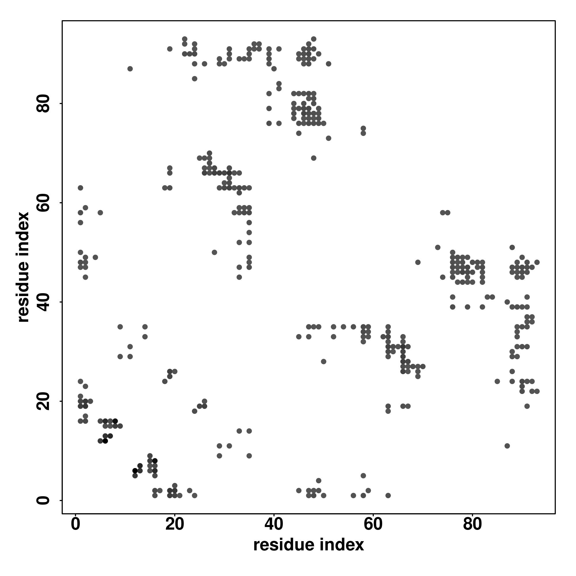 For the contact map, each dot represents a residue pair with predicted contact,
