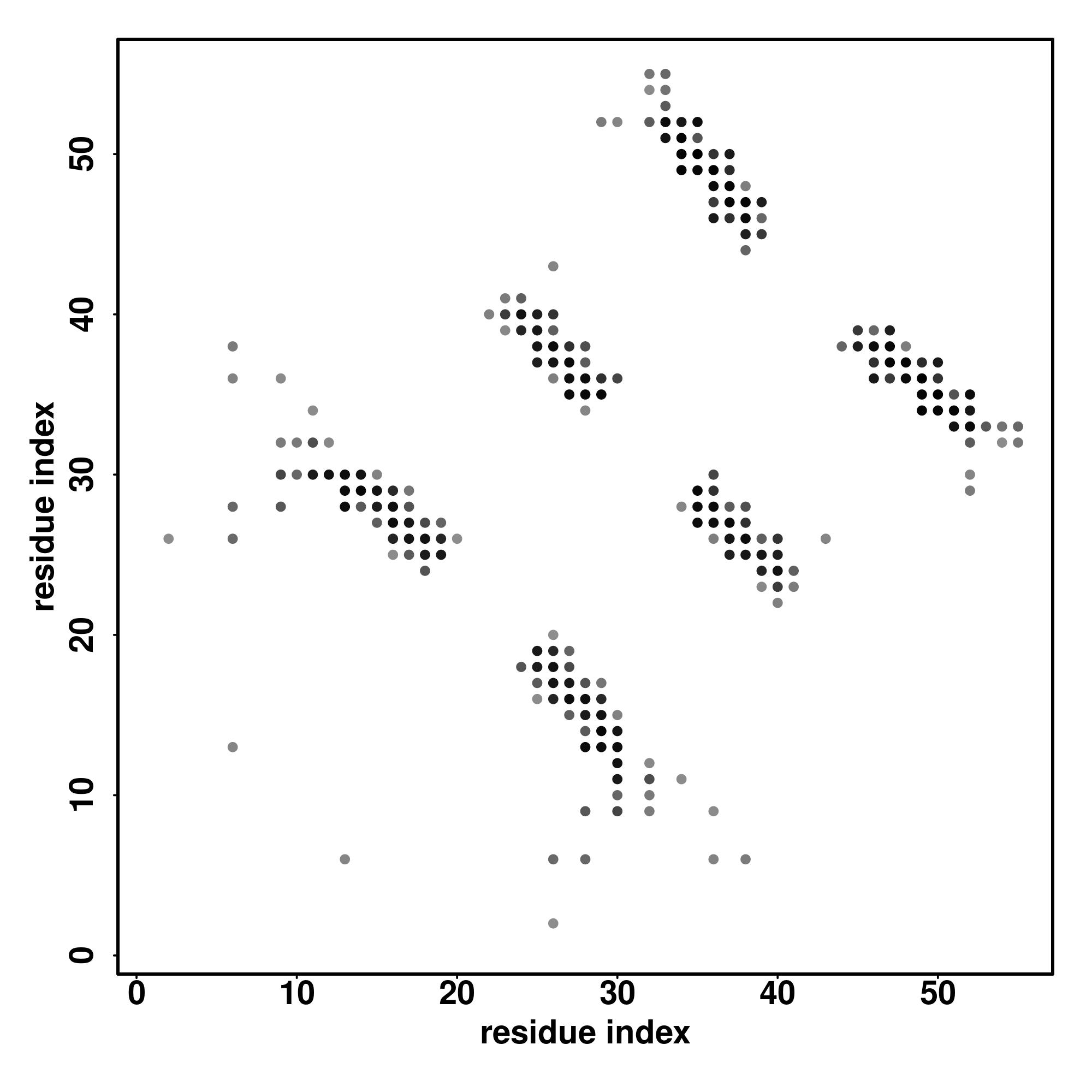 For the contact map, each dot represents a residue pair with predicted contact,