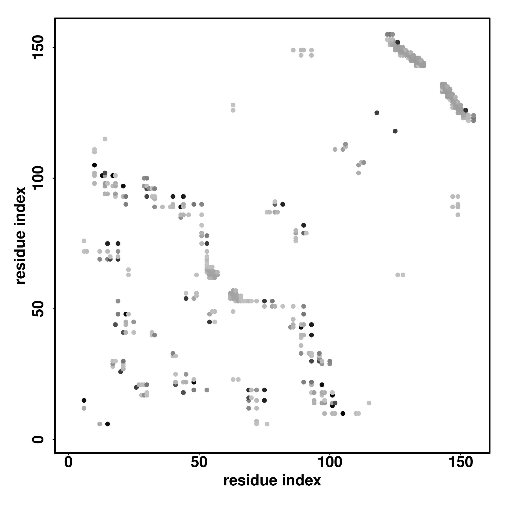 For the contact map, each dot represents a residue pair with predicted contact,
