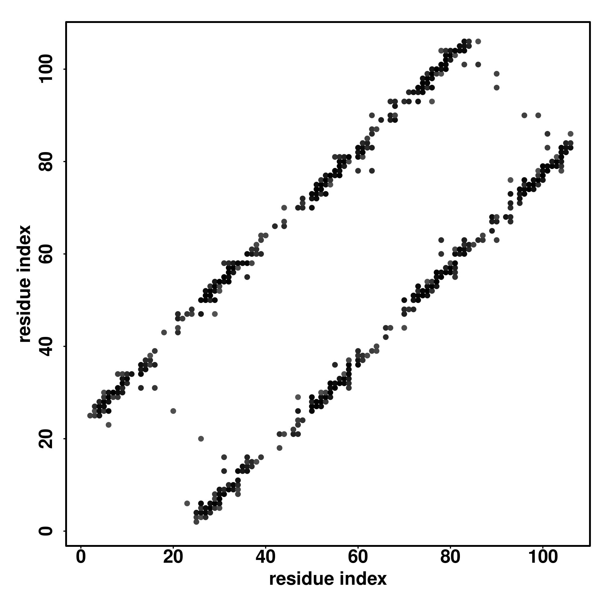 For the contact map, each dot represents a residue pair with predicted contact,
