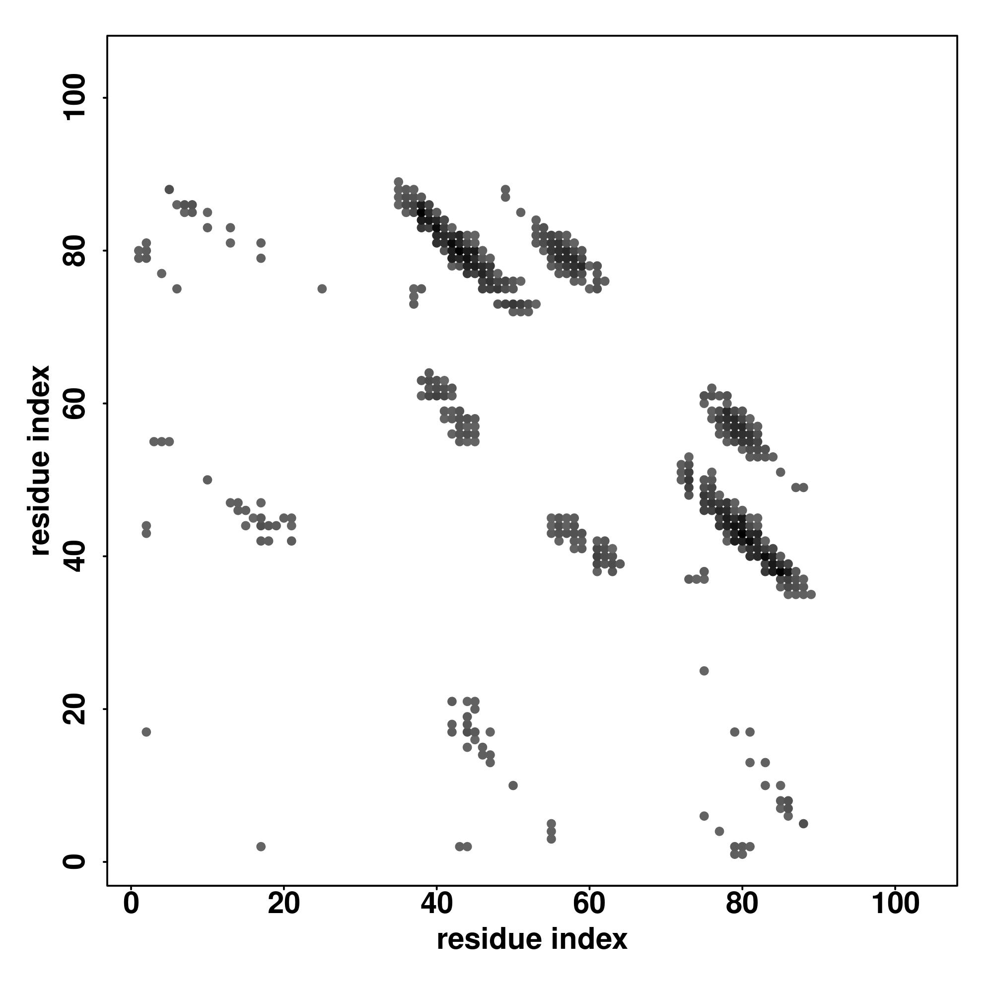 For the contact map, each dot represents a residue pair with predicted contact,