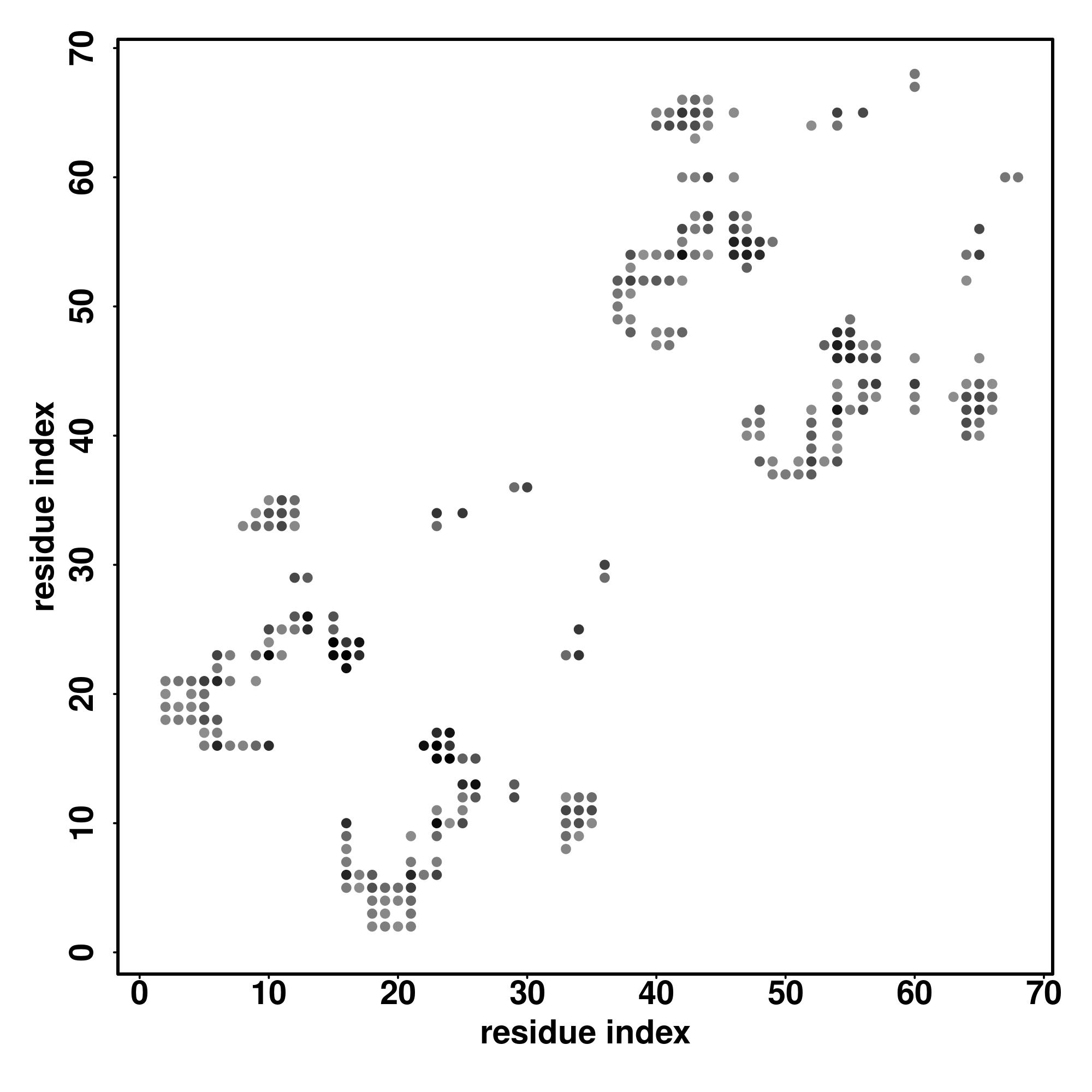 For the contact map, each dot represents a residue pair with predicted contact,
