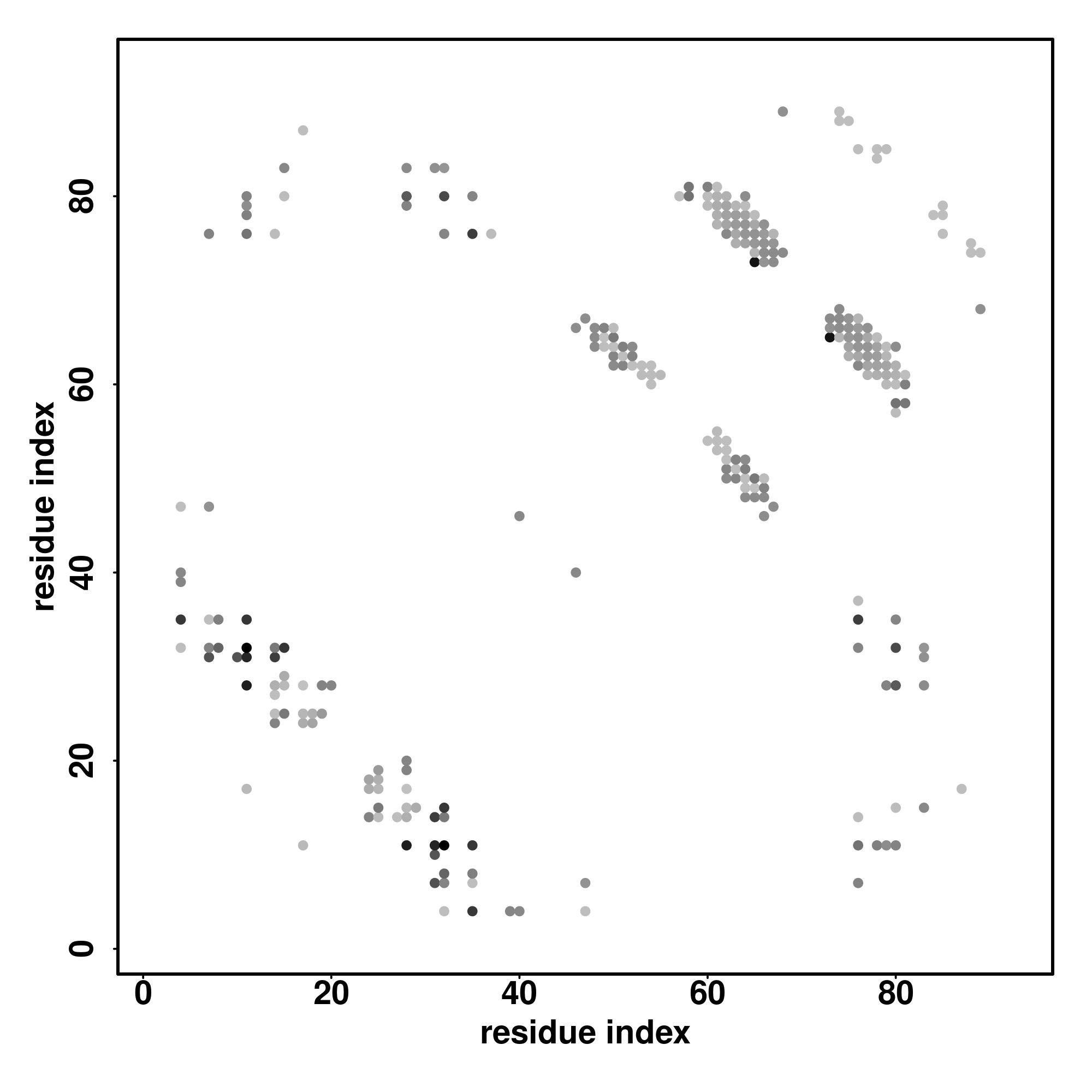 For the contact map, each dot represents a residue pair with predicted contact,