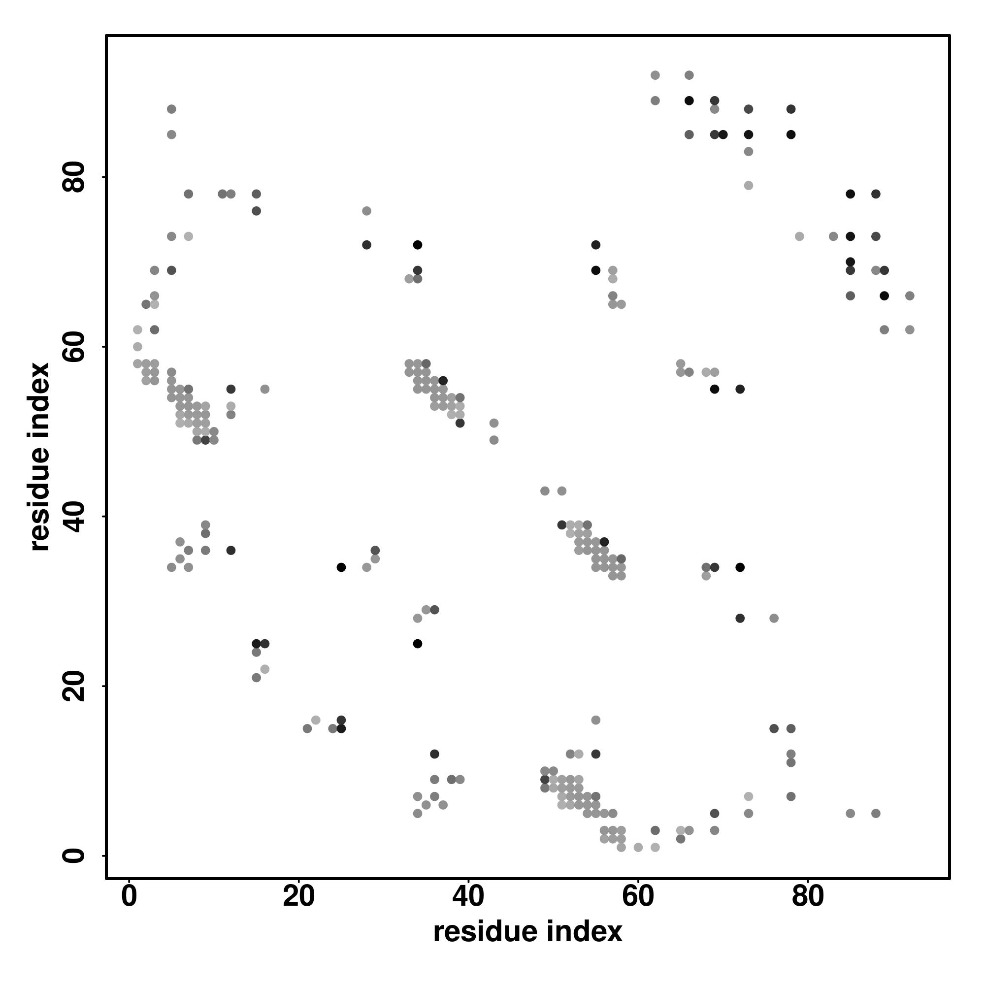 For the contact map, each dot represents a residue pair with predicted contact,