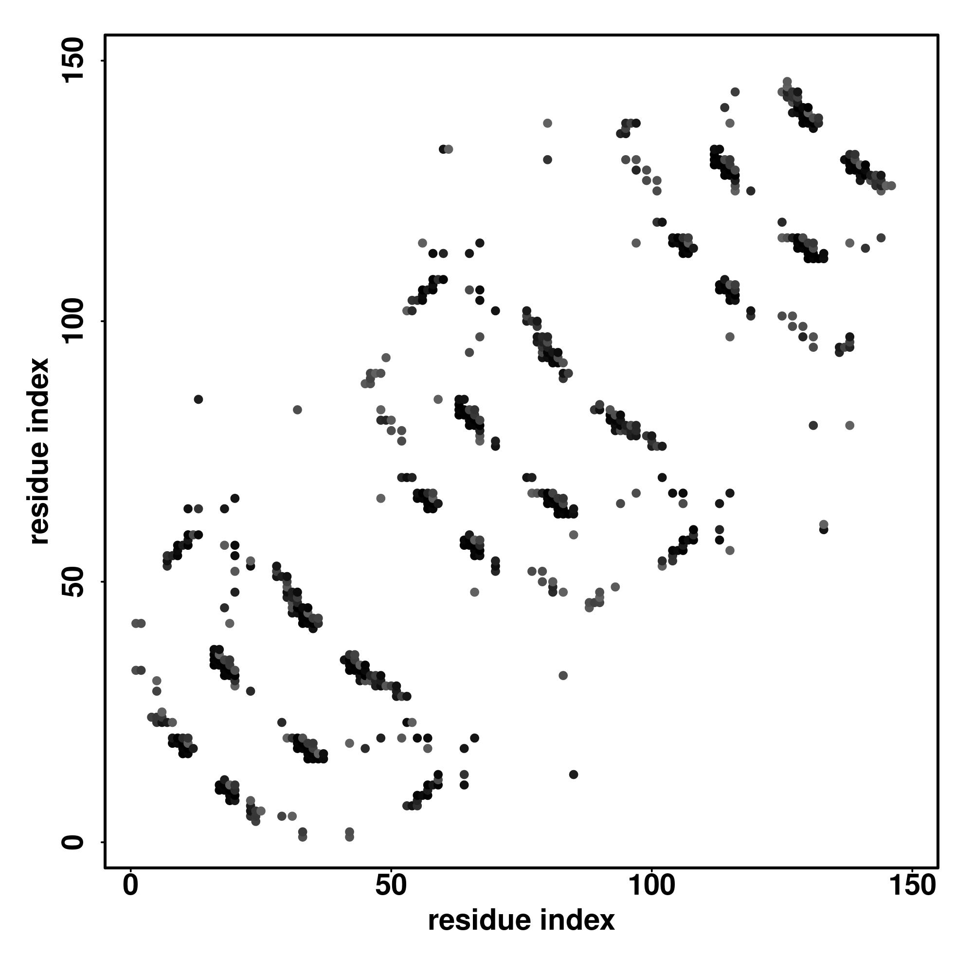 For the contact map, each dot represents a residue pair with predicted contact,