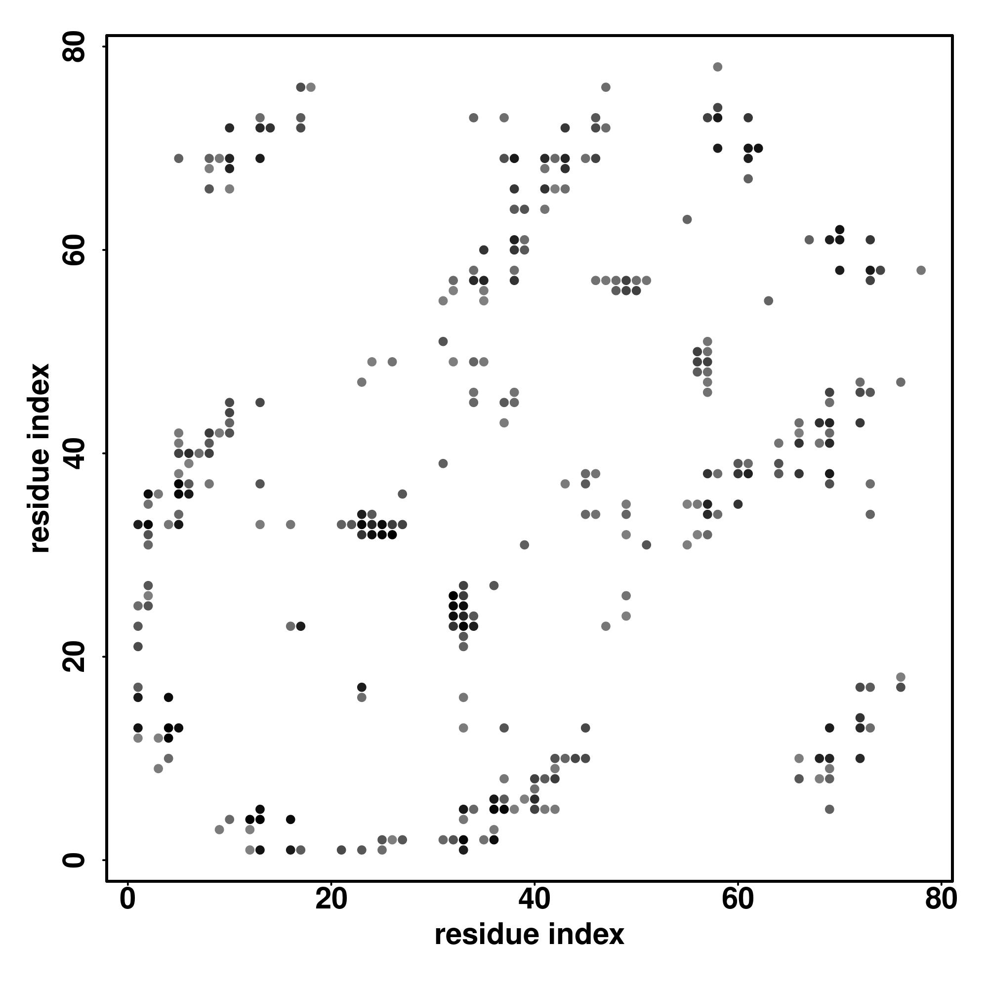 For the contact map, each dot represents a residue pair with predicted contact,