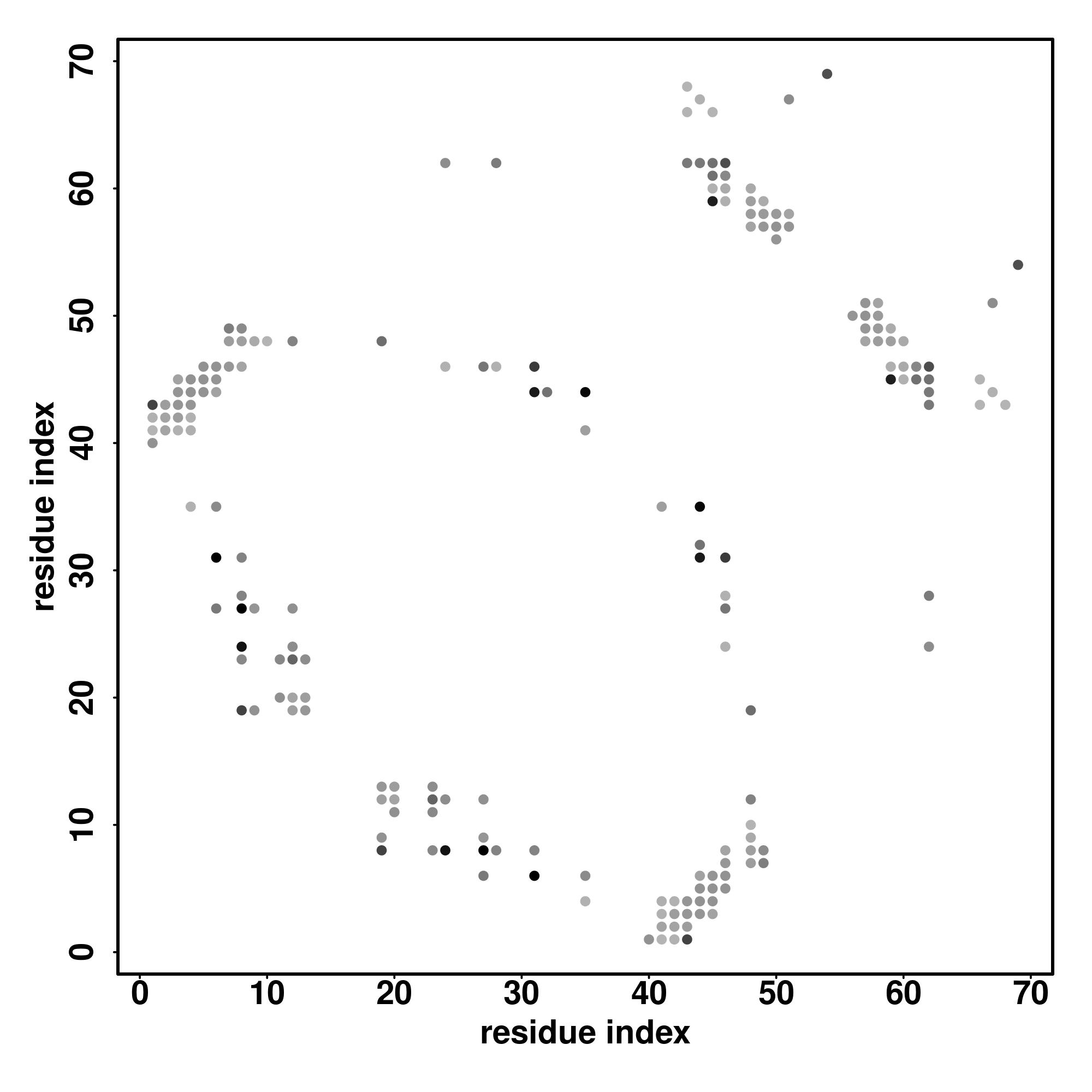 For the contact map, each dot represents a residue pair with predicted contact,