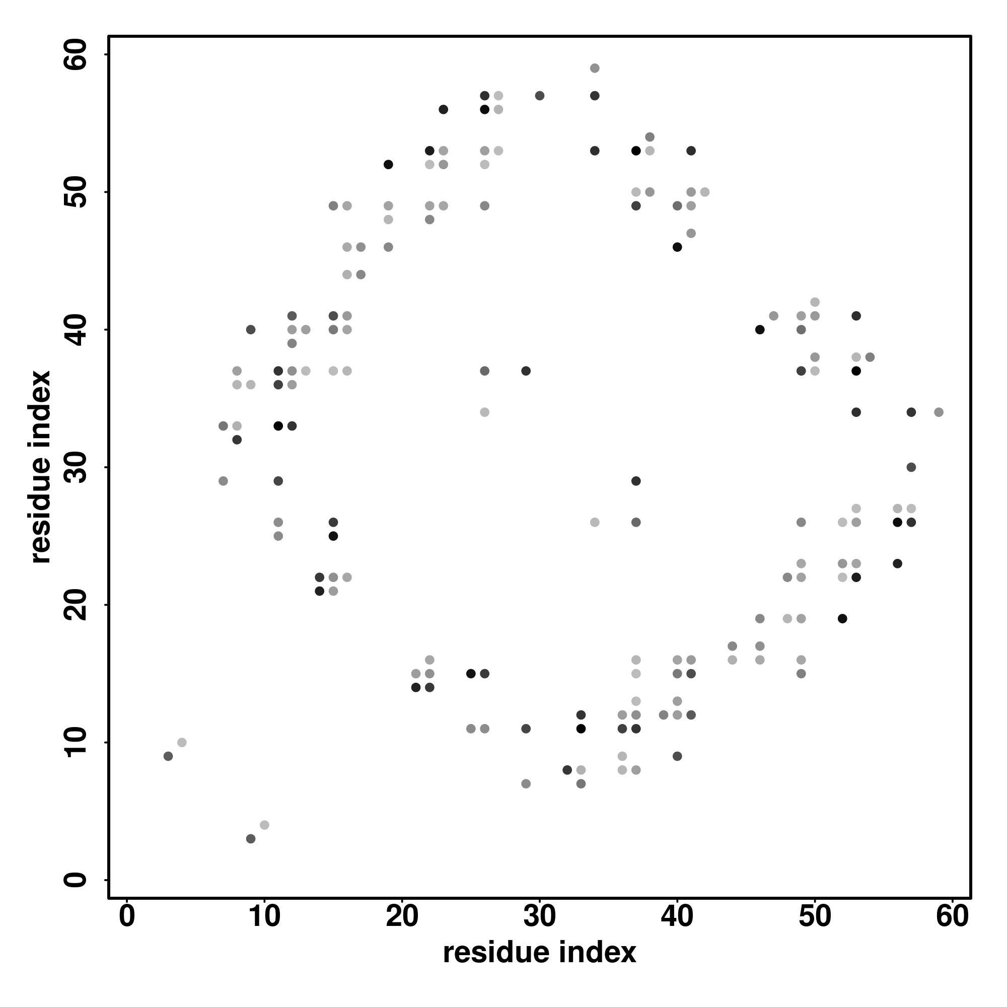 For the contact map, each dot represents a residue pair with predicted contact,