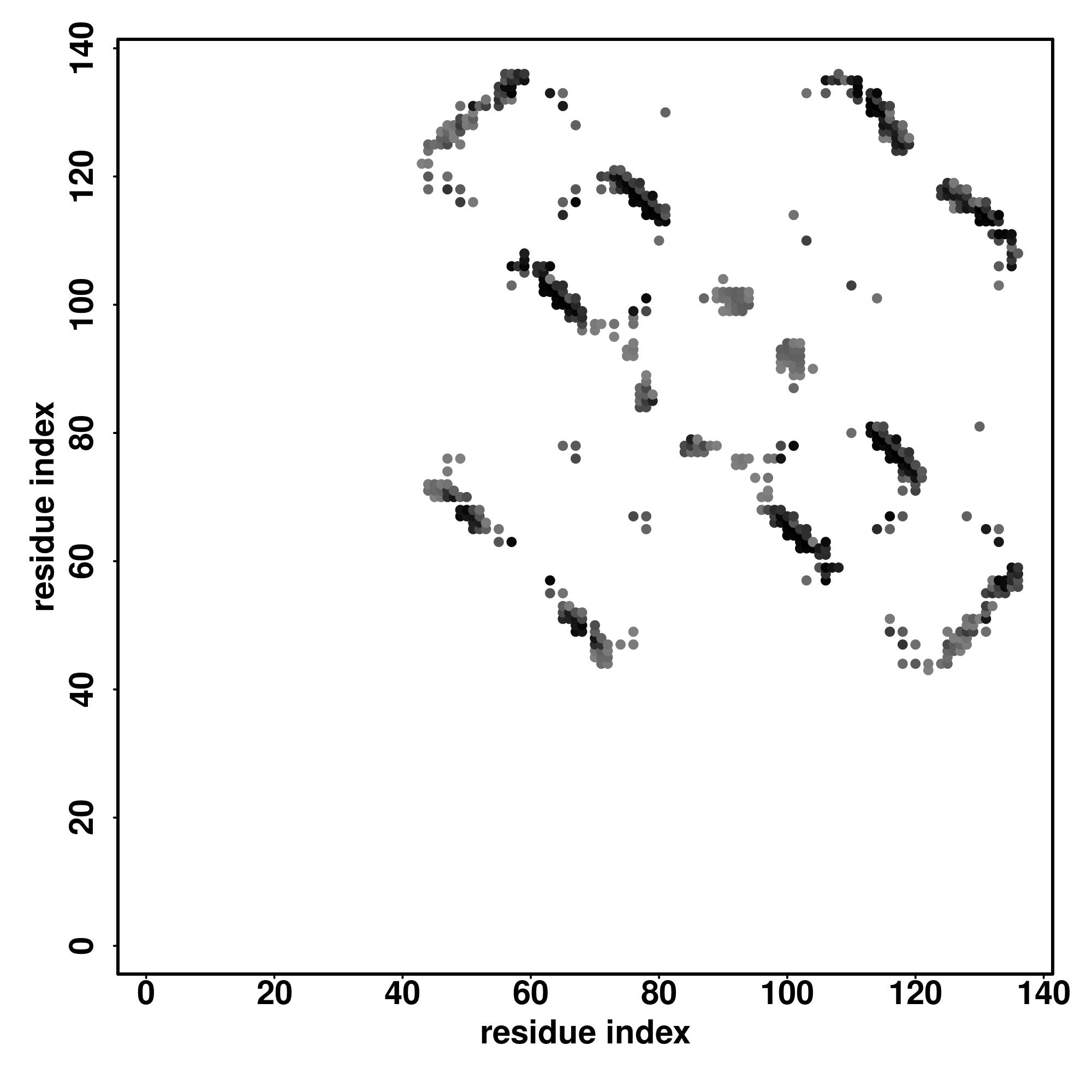For the contact map, each dot represents a residue pair with predicted contact,