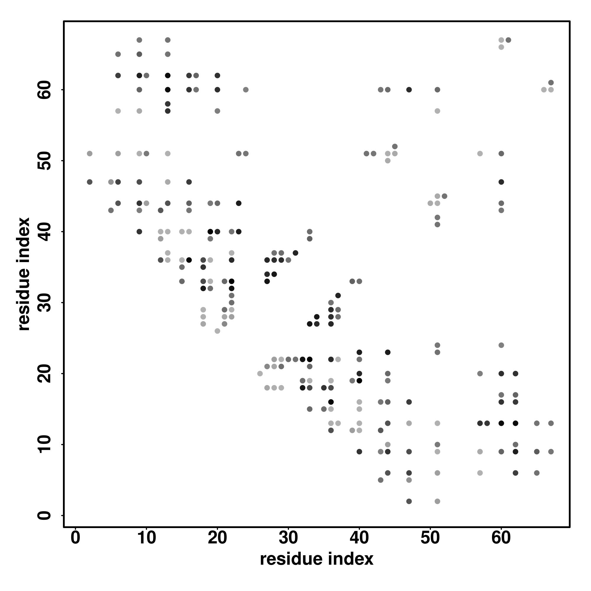 For the contact map, each dot represents a residue pair with predicted contact,