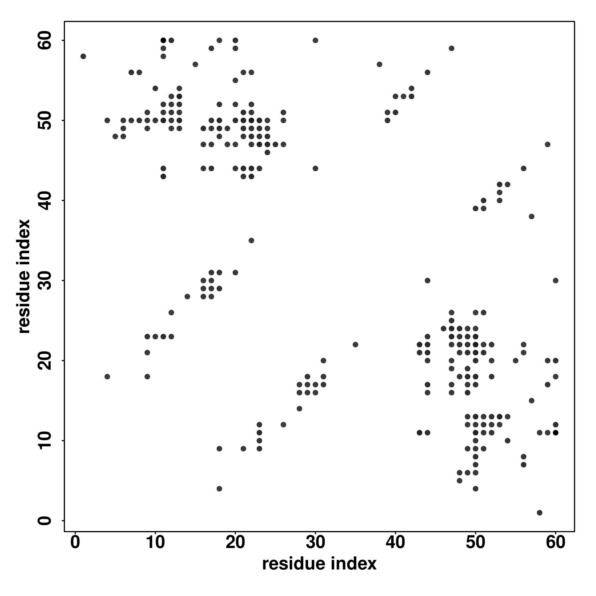 For the contact map, each dot represents a residue pair with predicted contact,