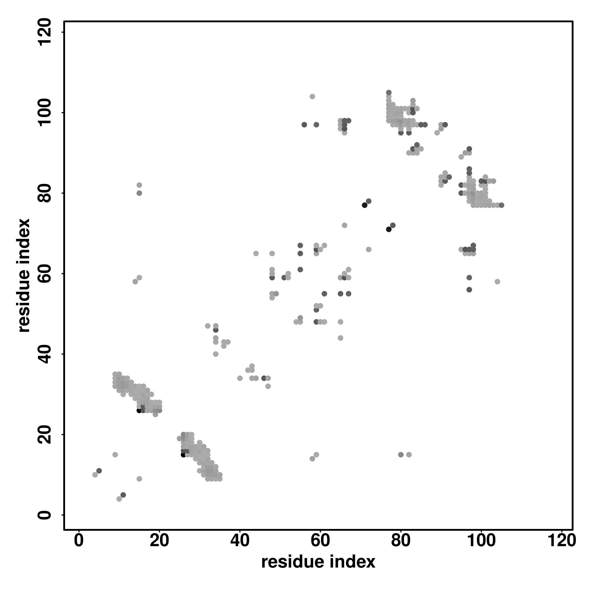 For the contact map, each dot represents a residue pair with predicted contact,