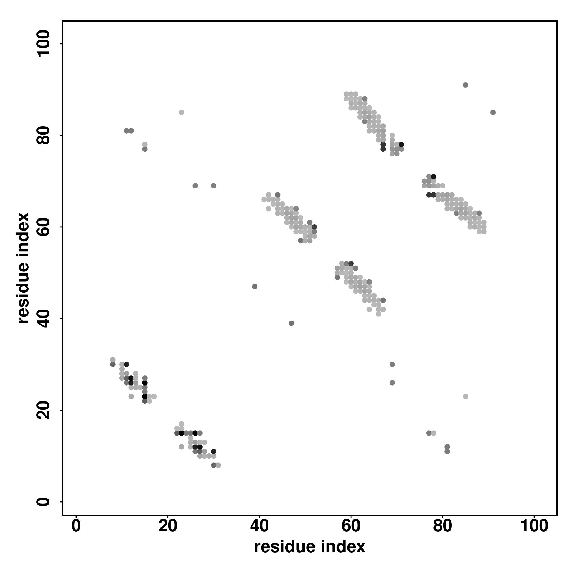 For the contact map, each dot represents a residue pair with predicted contact,