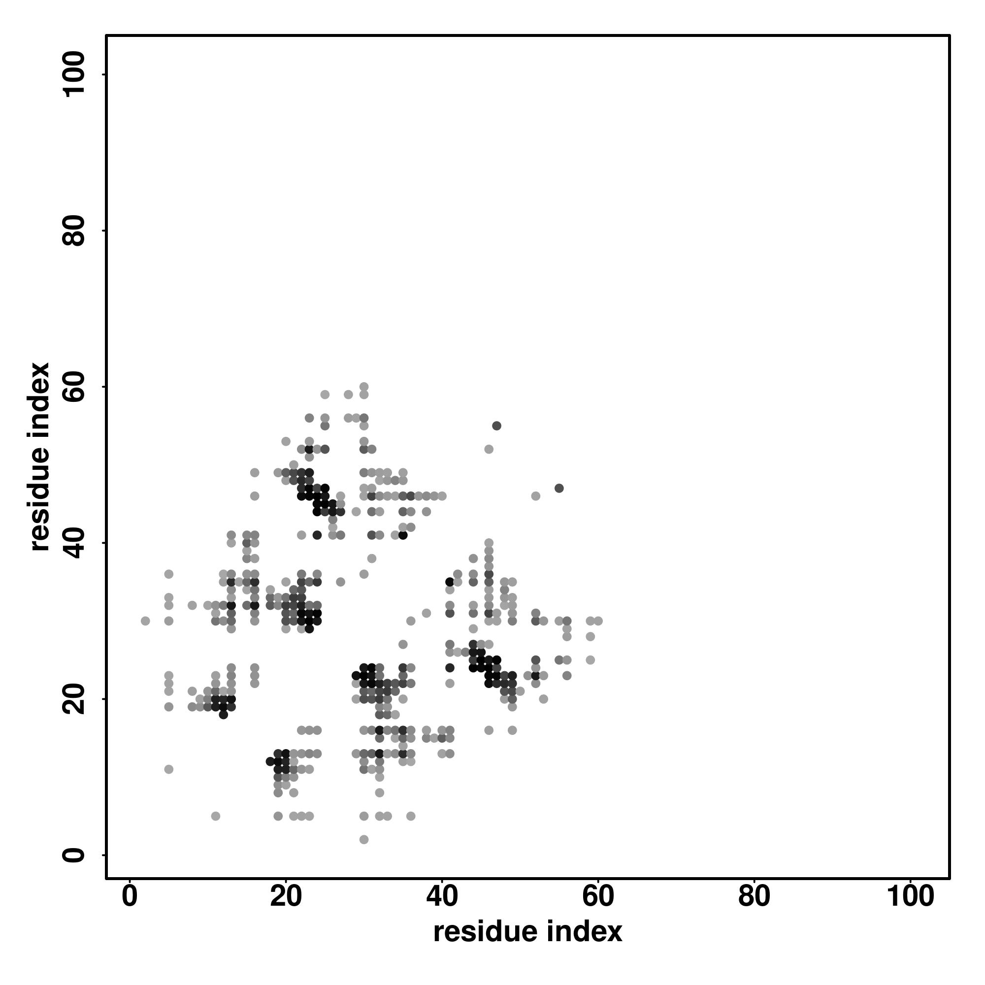 For the contact map, each dot represents a residue pair with predicted contact,