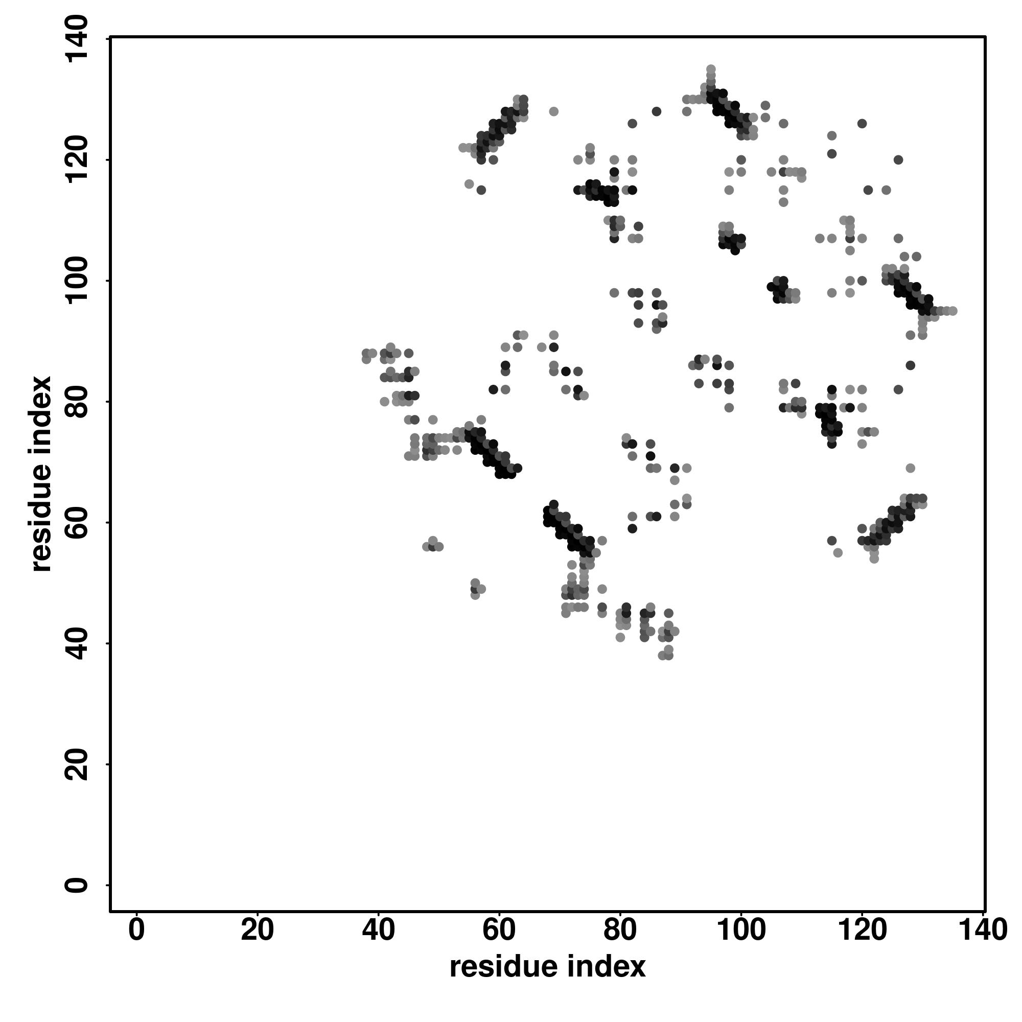 For the contact map, each dot represents a residue pair with predicted contact,
