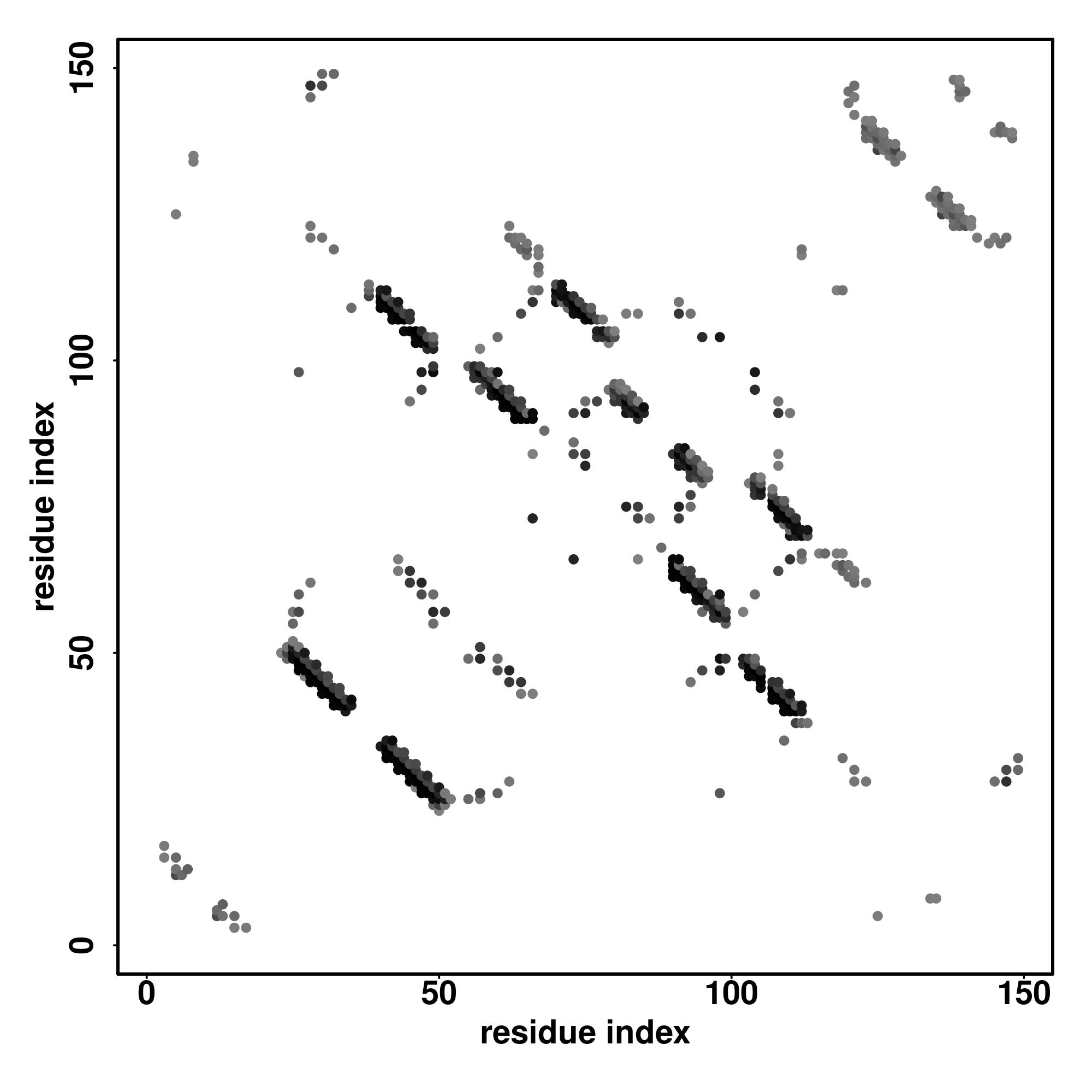 For the contact map, each dot represents a residue pair with predicted contact,
