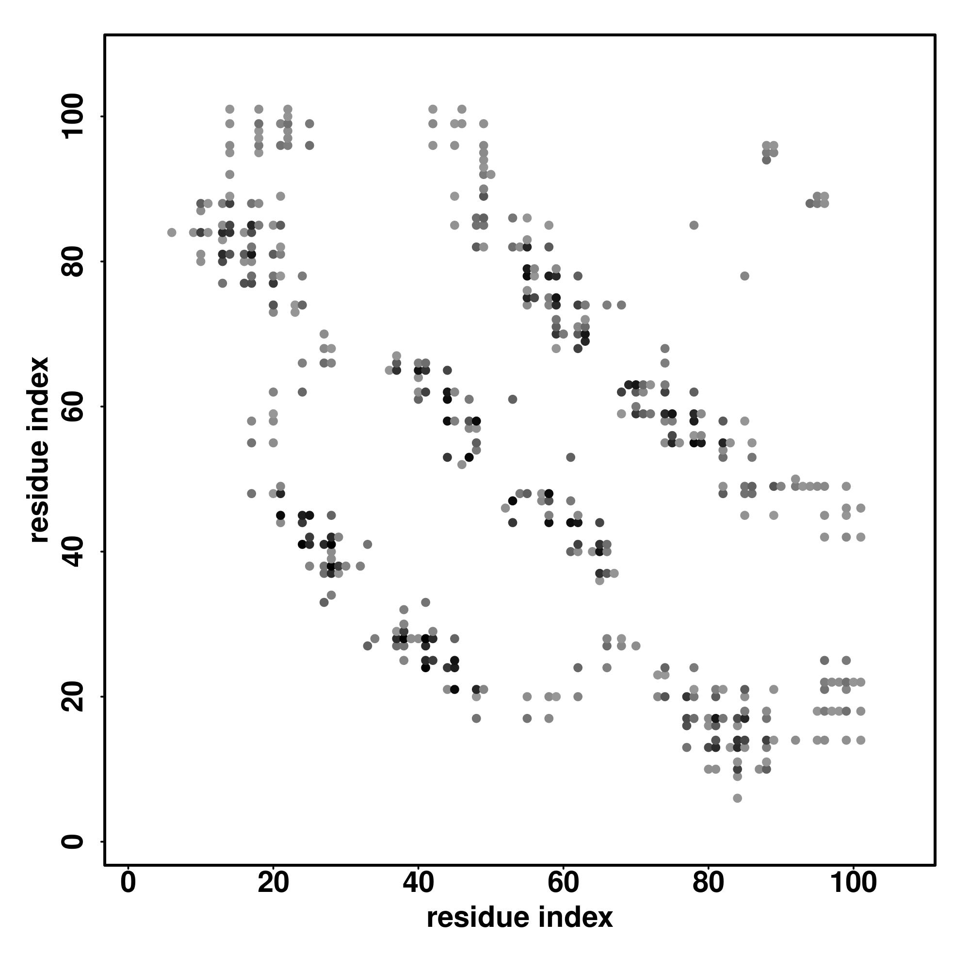 For the contact map, each dot represents a residue pair with predicted contact,