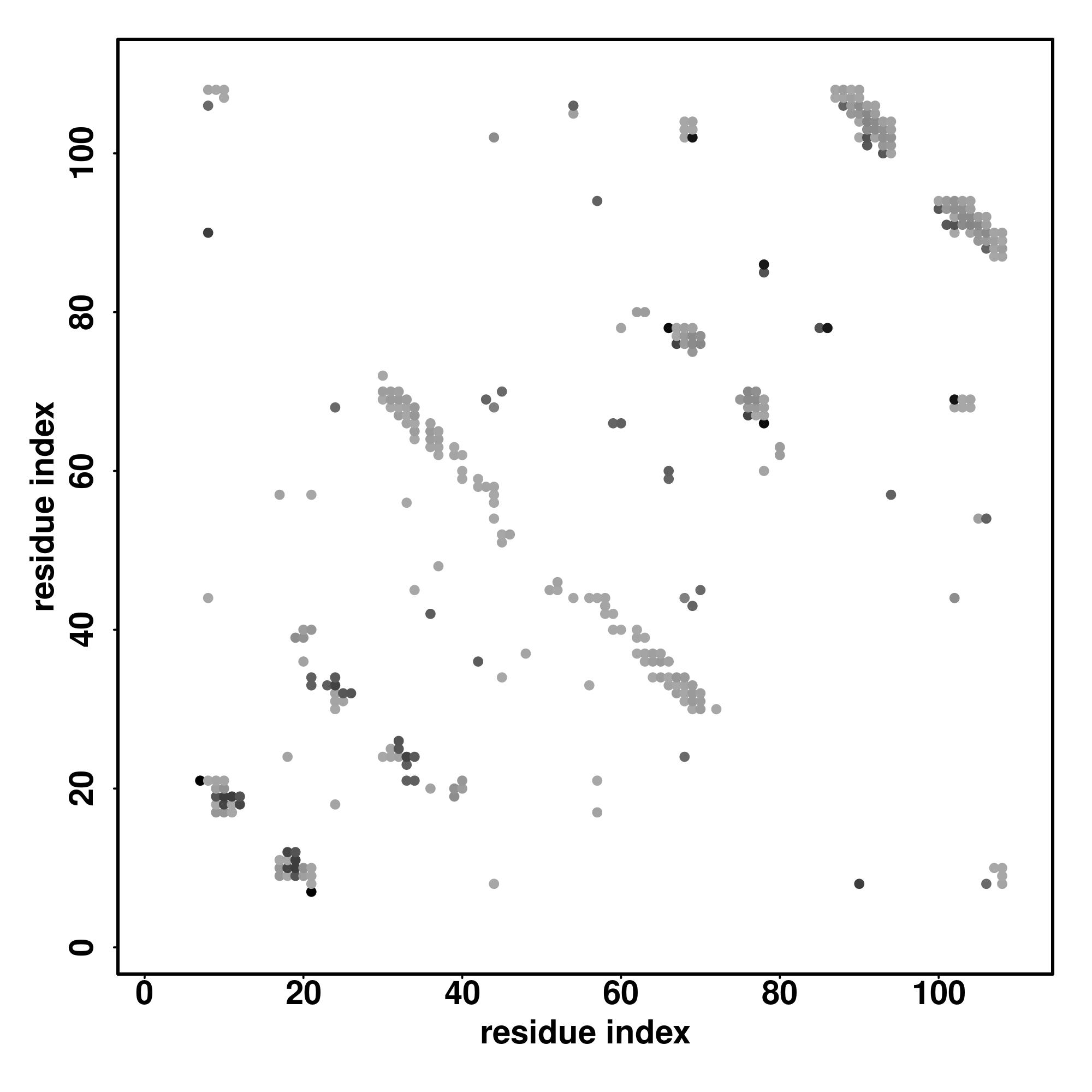 For the contact map, each dot represents a residue pair with predicted contact,