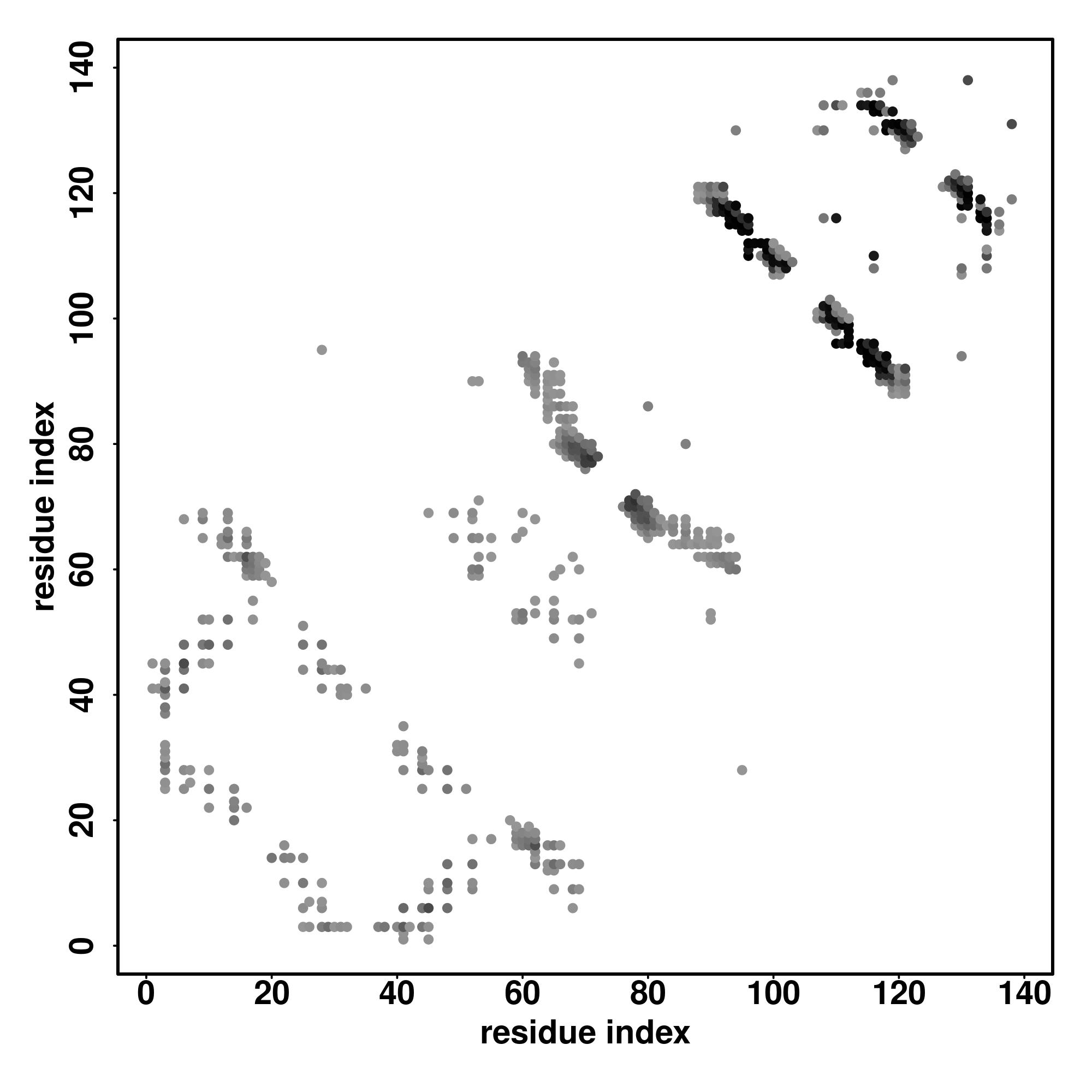For the contact map, each dot represents a residue pair with predicted contact,