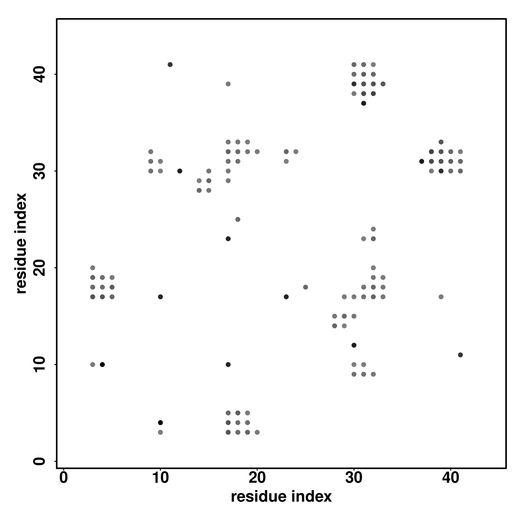 For the contact map, each dot represents a residue pair with predicted contact,