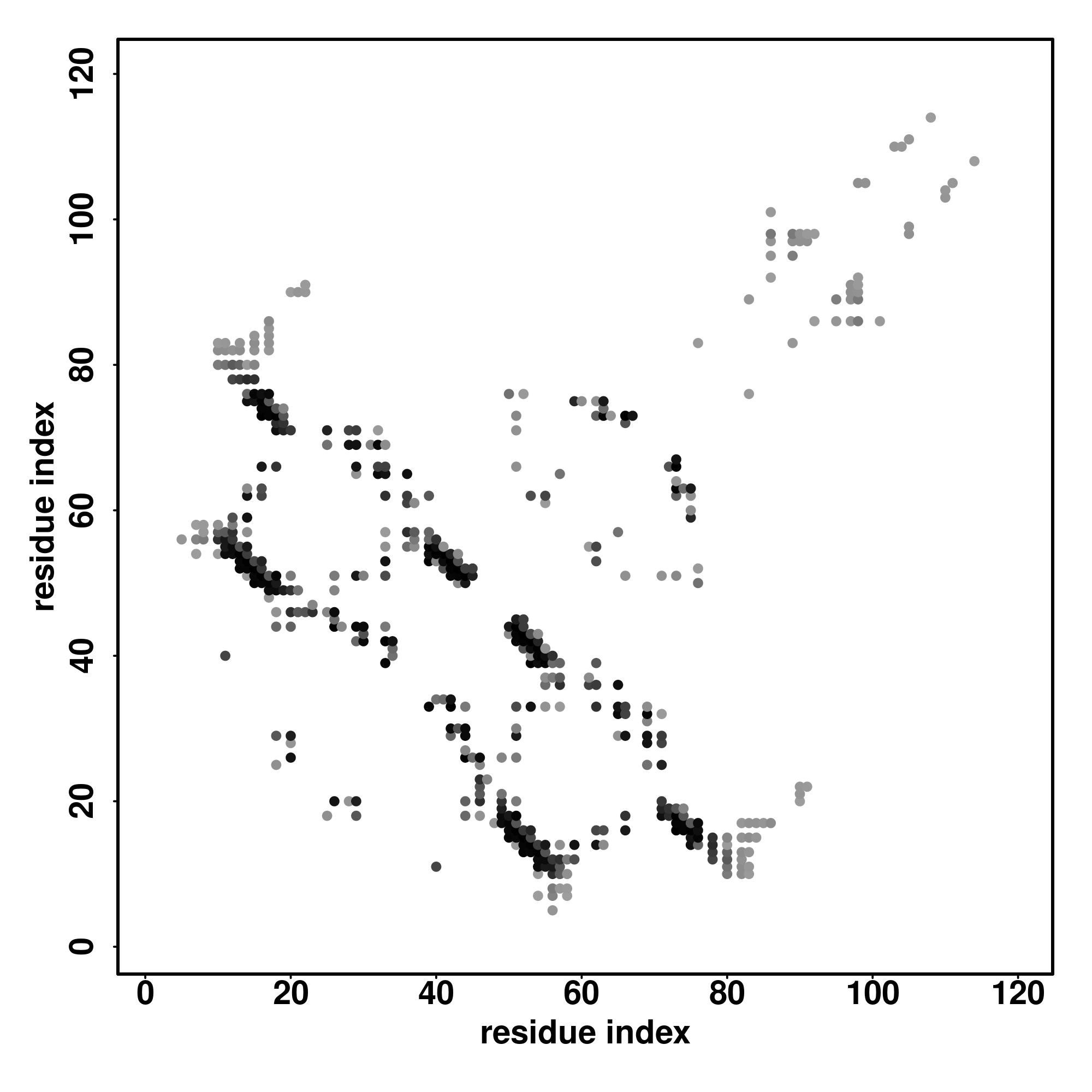 For the contact map, each dot represents a residue pair with predicted contact,