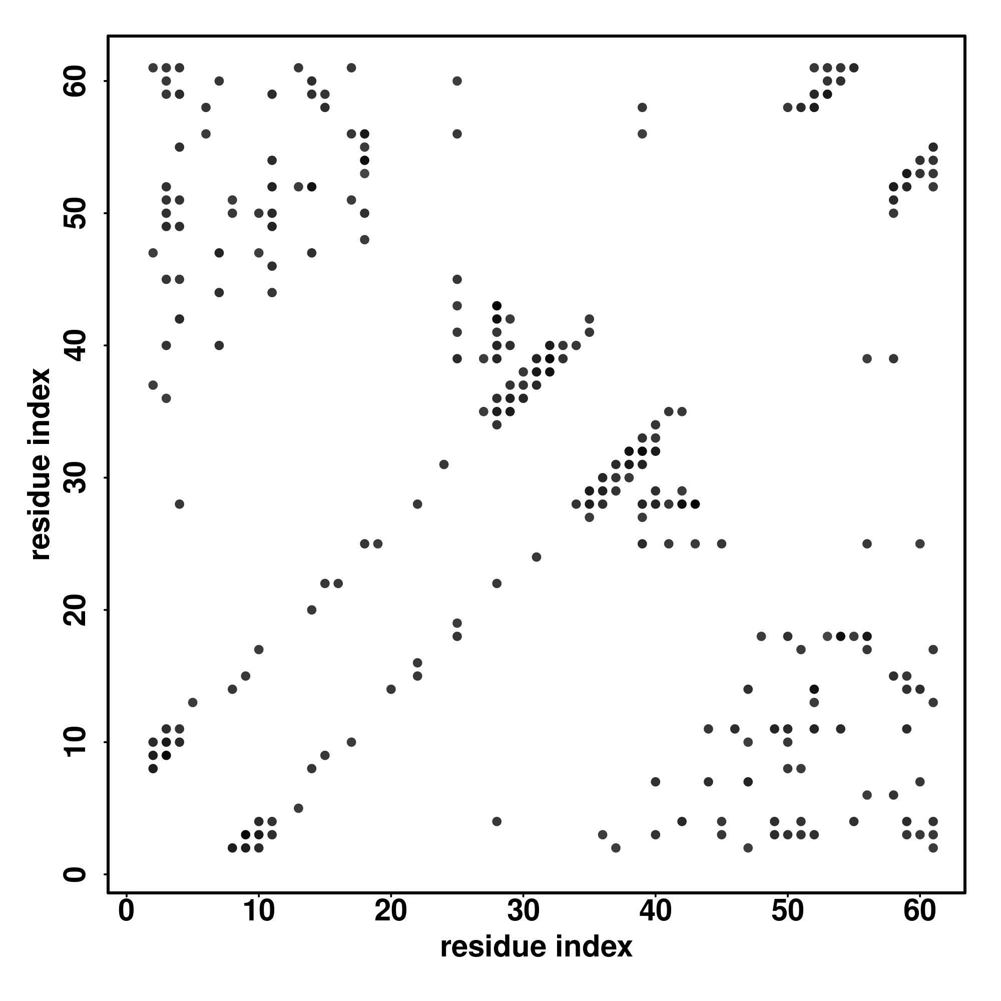 For the contact map, each dot represents a residue pair with predicted contact,