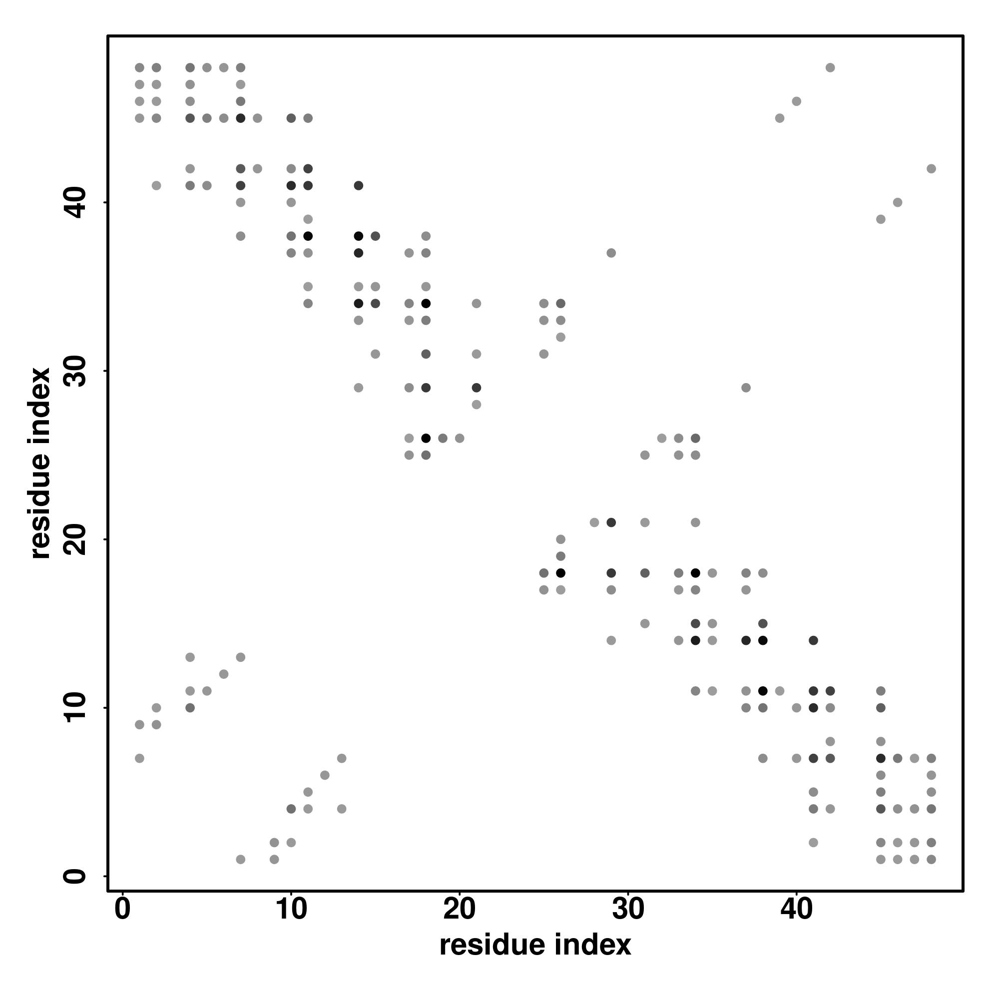 For the contact map, each dot represents a residue pair with predicted contact,