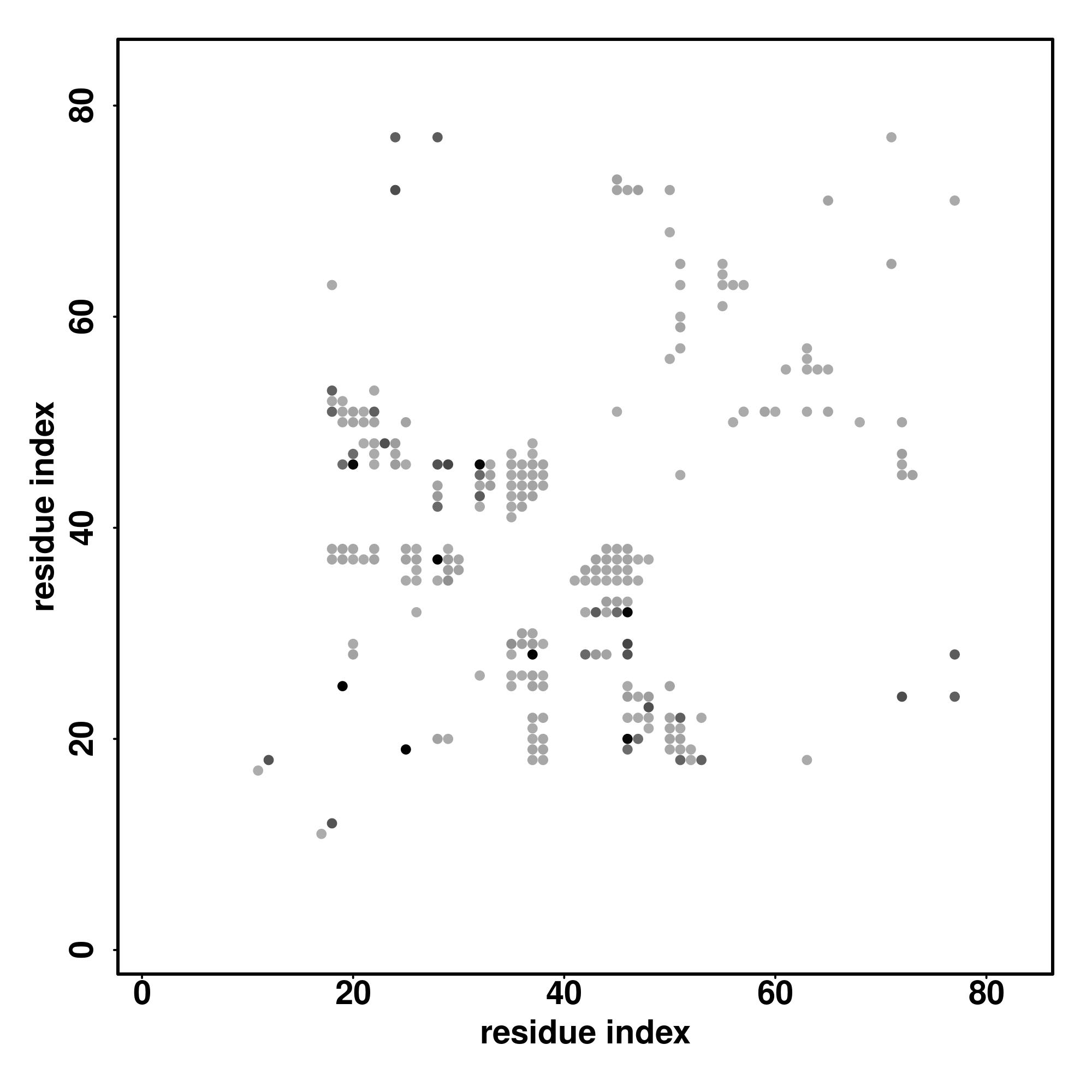 For the contact map, each dot represents a residue pair with predicted contact,