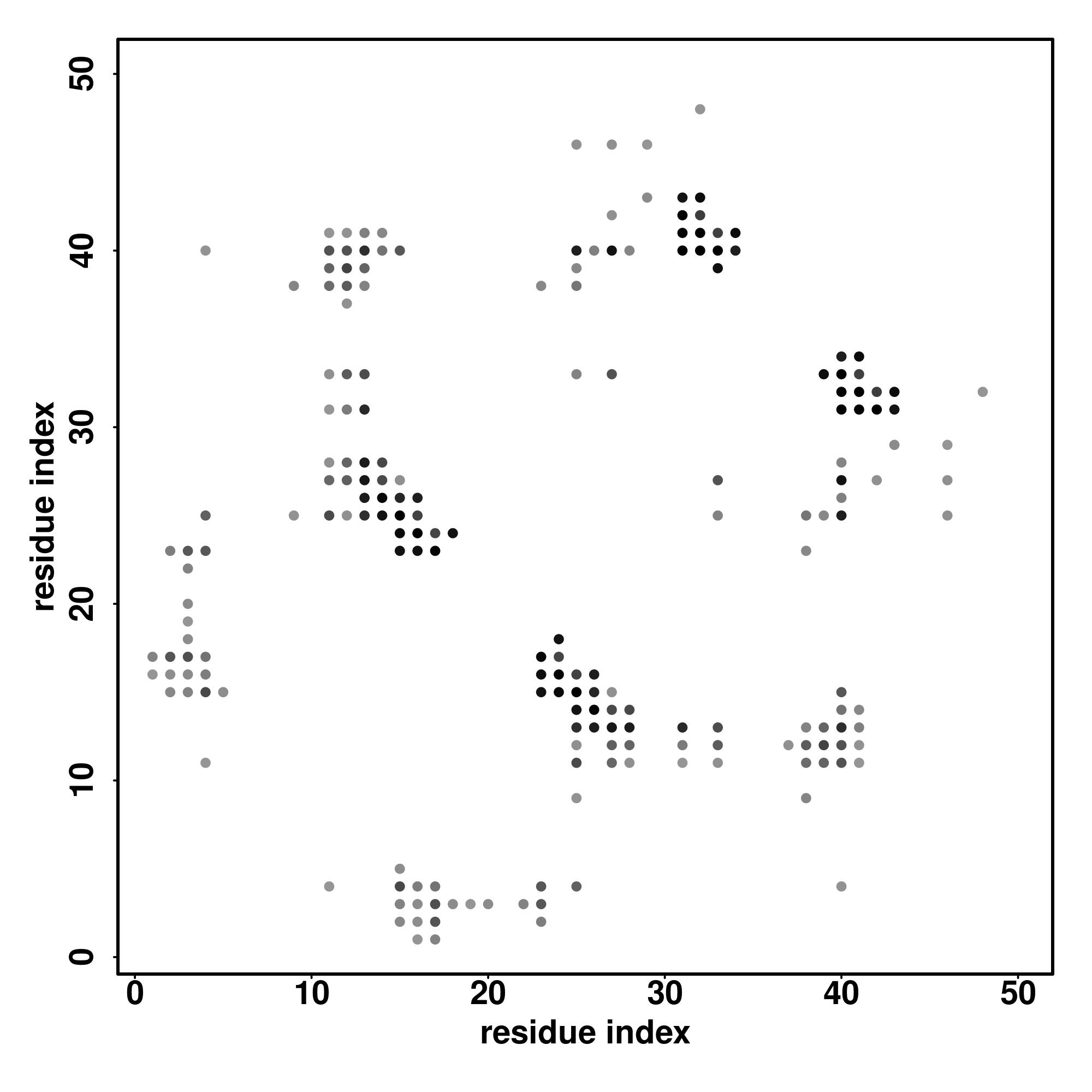 For the contact map, each dot represents a residue pair with predicted contact,