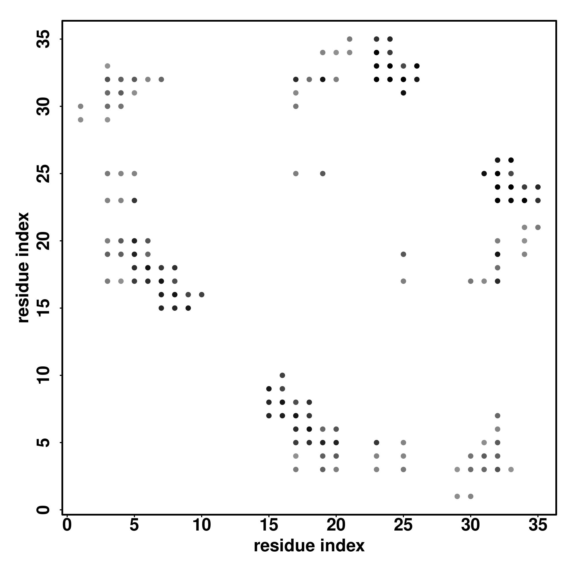 For the contact map, each dot represents a residue pair with predicted contact,