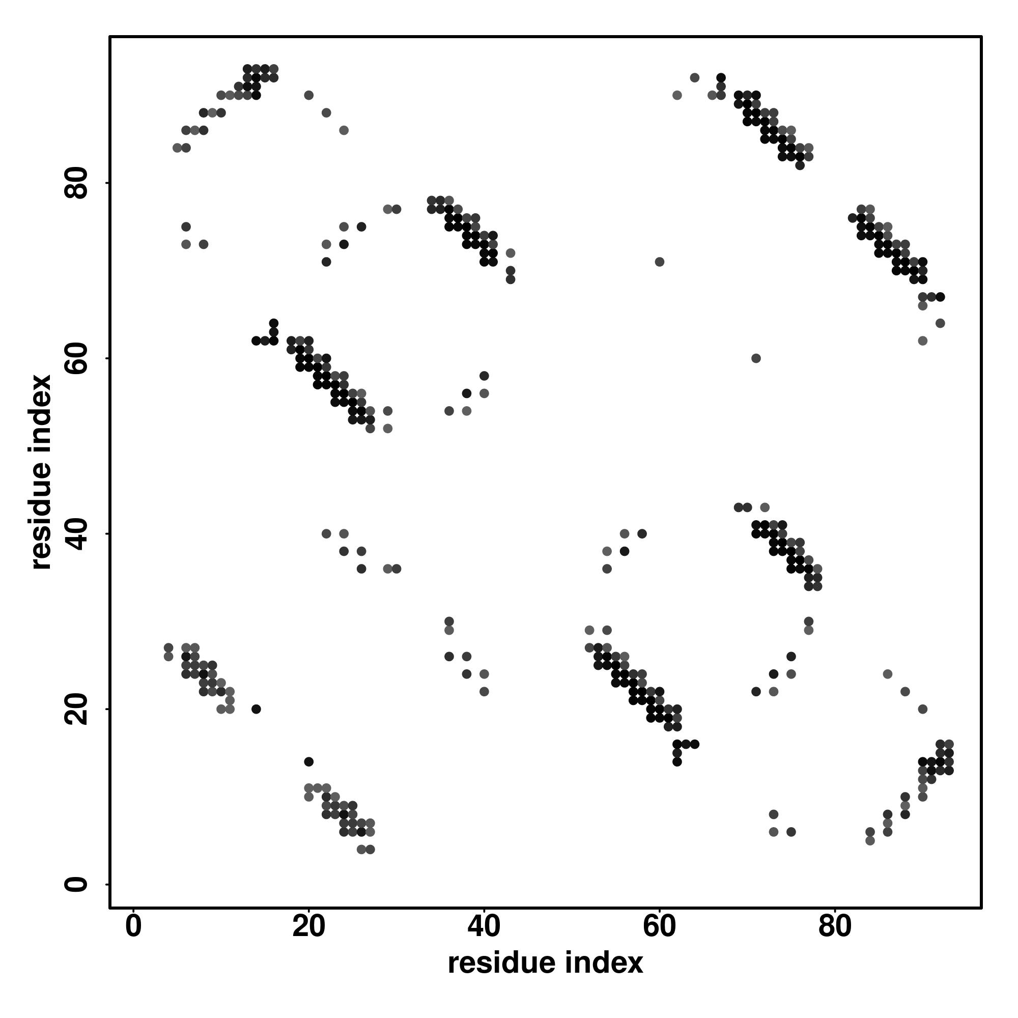 For the contact map, each dot represents a residue pair with predicted contact,