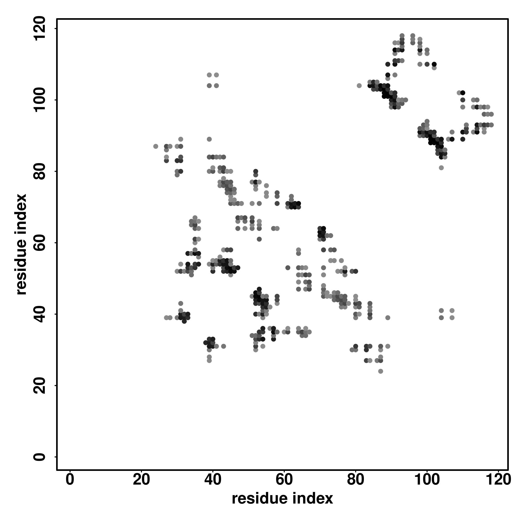 For the contact map, each dot represents a residue pair with predicted contact,