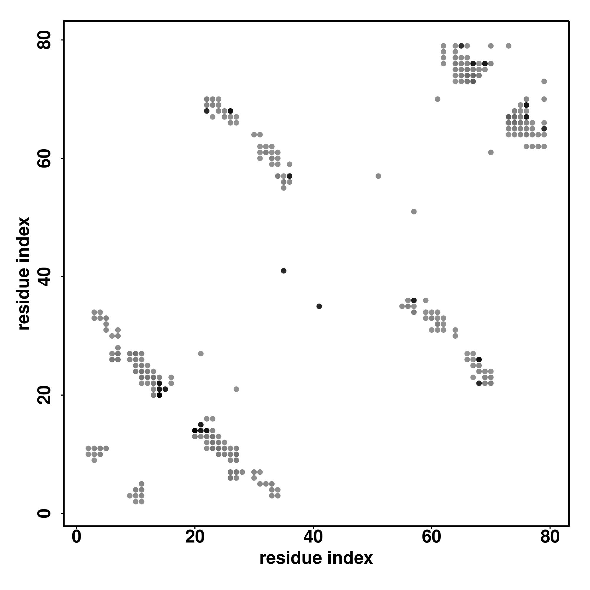 For the contact map, each dot represents a residue pair with predicted contact,