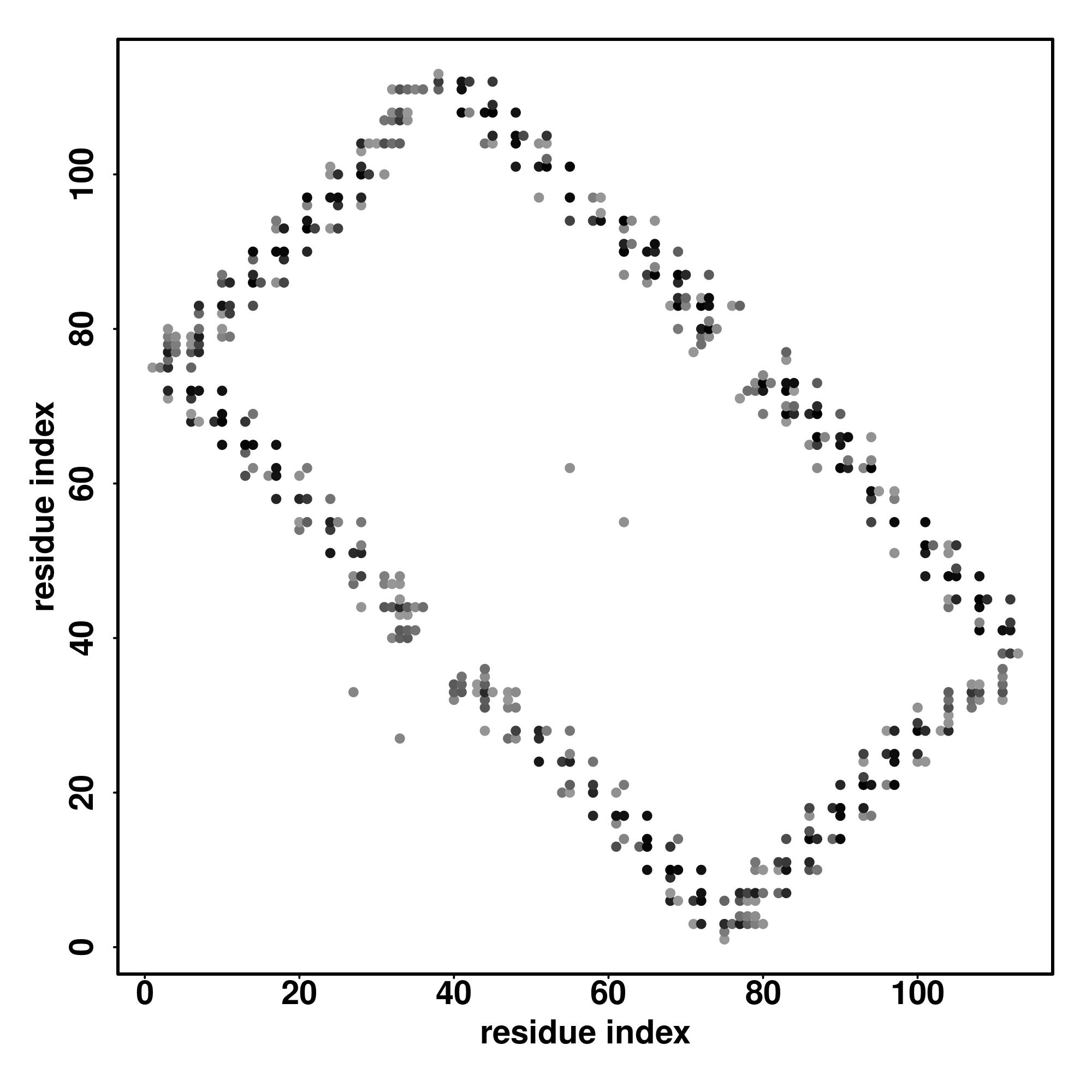 For the contact map, each dot represents a residue pair with predicted contact,