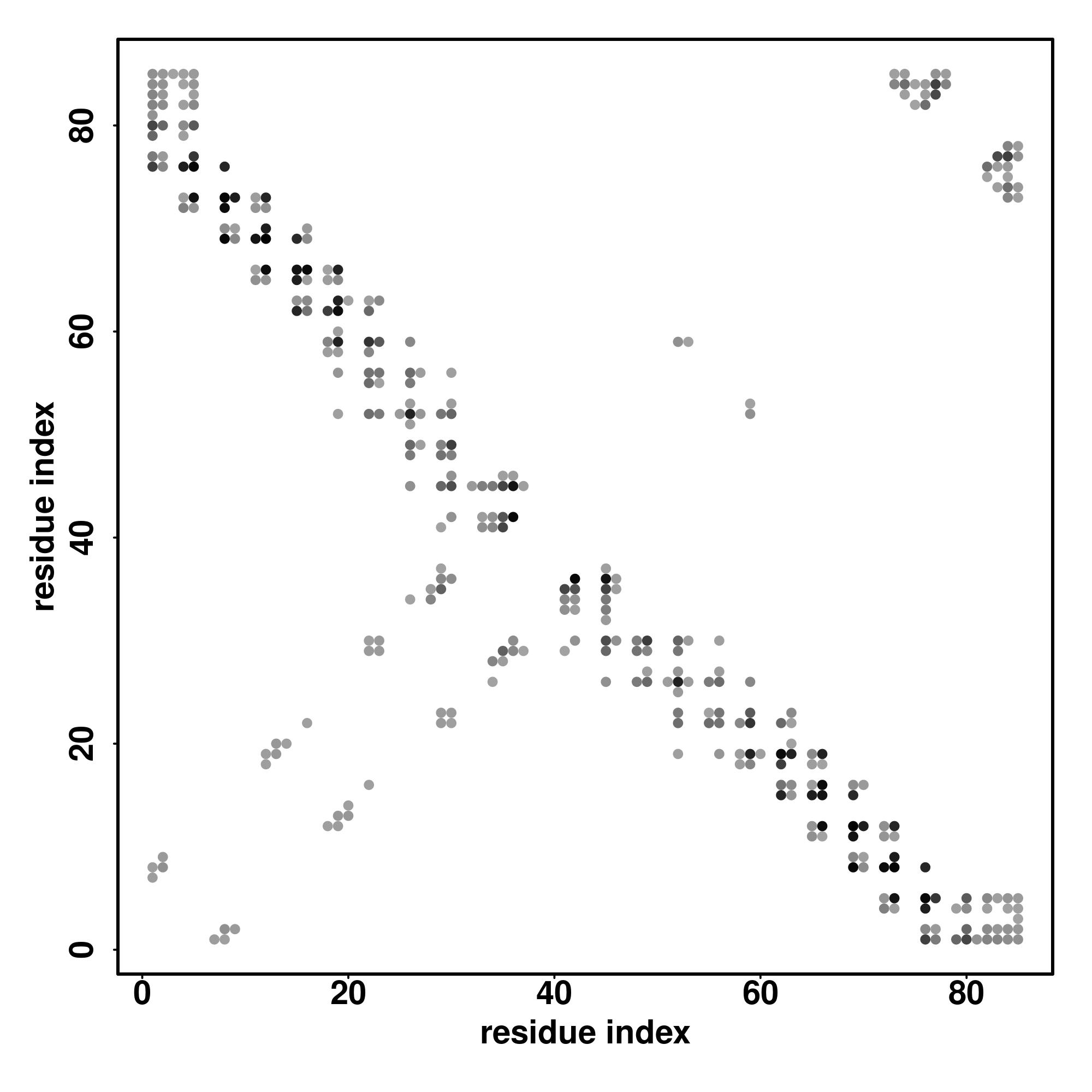 For the contact map, each dot represents a residue pair with predicted contact,