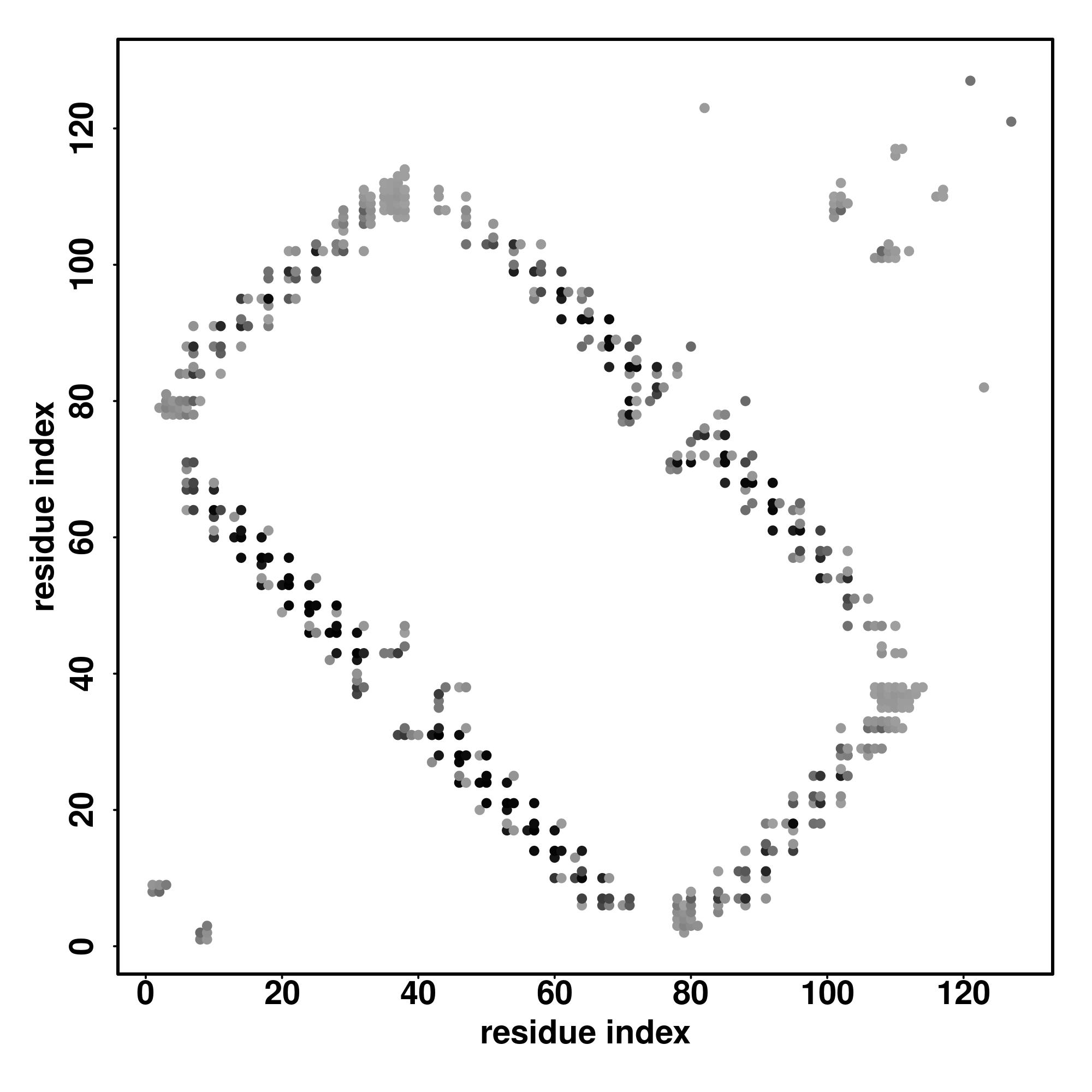 For the contact map, each dot represents a residue pair with predicted contact,