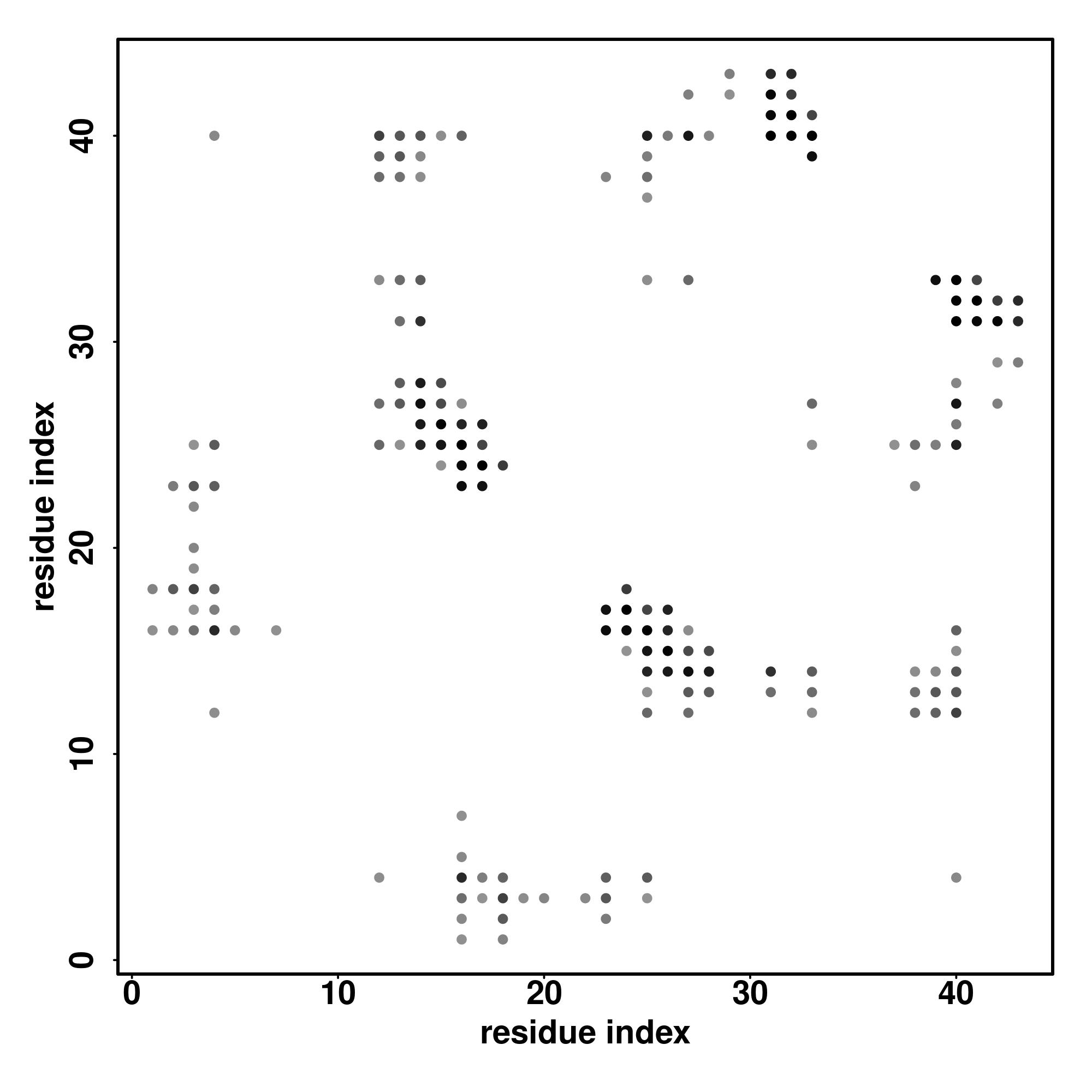 For the contact map, each dot represents a residue pair with predicted contact,