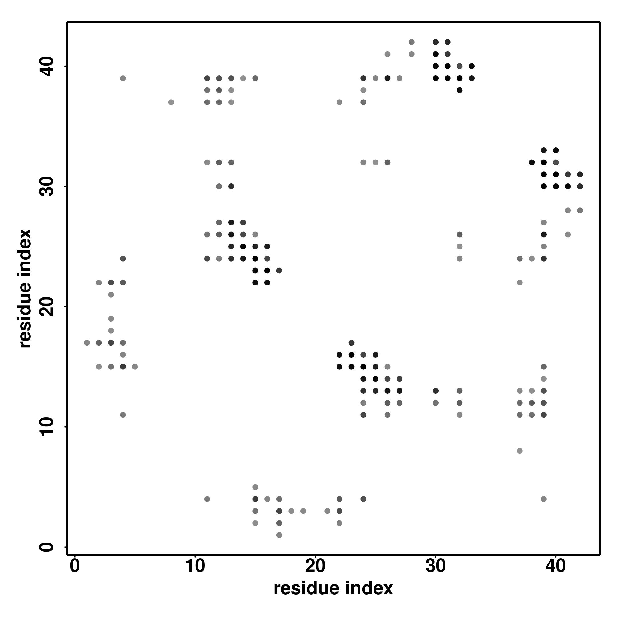 For the contact map, each dot represents a residue pair with predicted contact,
