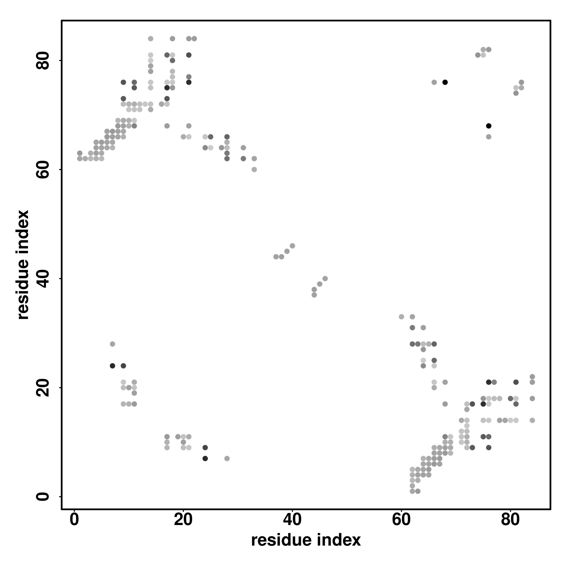 For the contact map, each dot represents a residue pair with predicted contact,