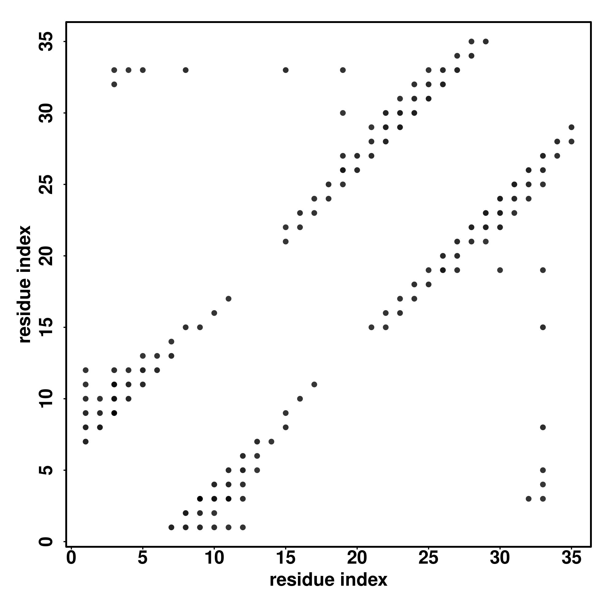 For the contact map, each dot represents a residue pair with predicted contact,