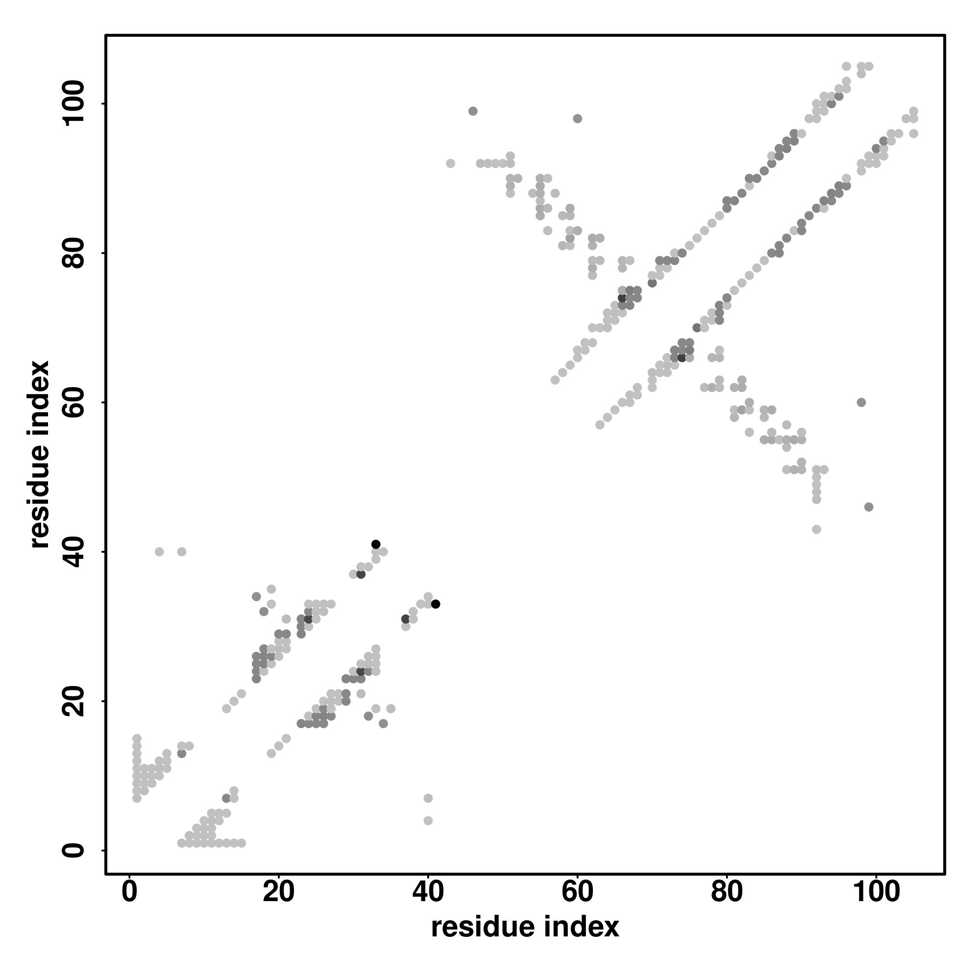 For the contact map, each dot represents a residue pair with predicted contact,