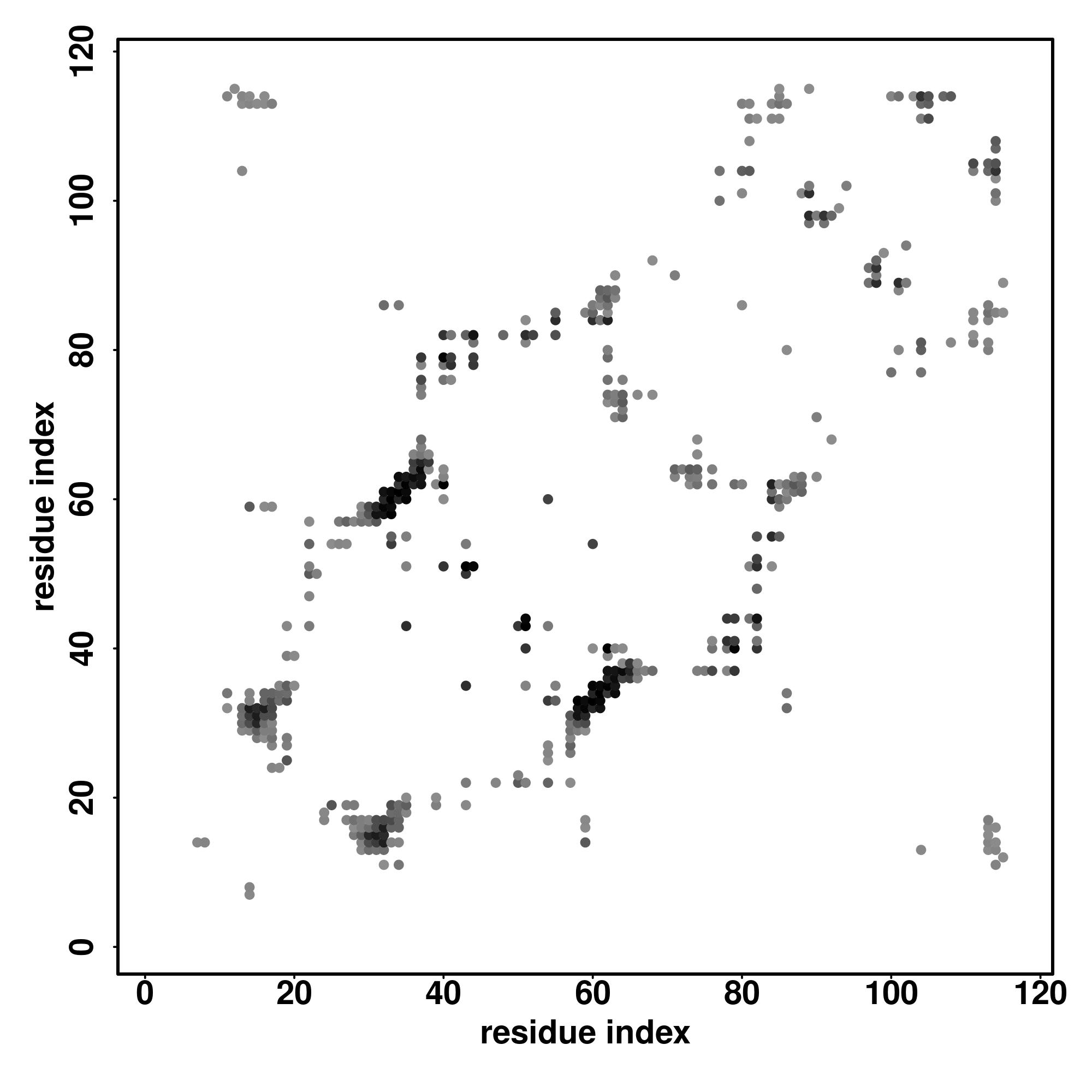 For the contact map, each dot represents a residue pair with predicted contact,