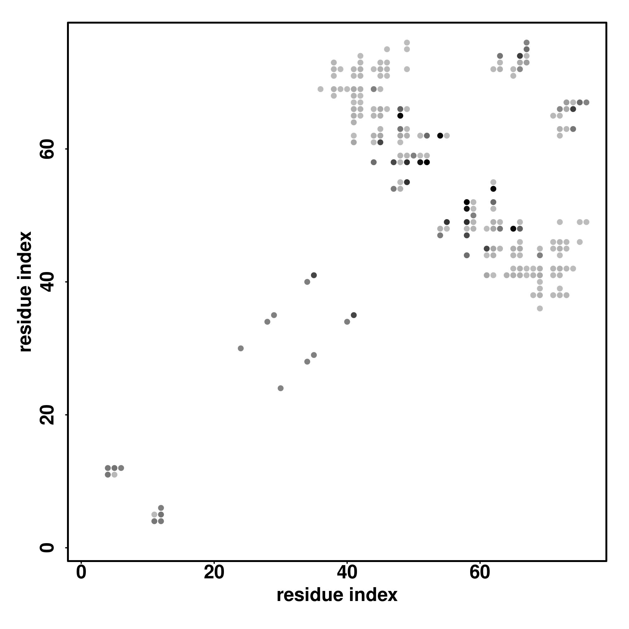 For the contact map, each dot represents a residue pair with predicted contact,