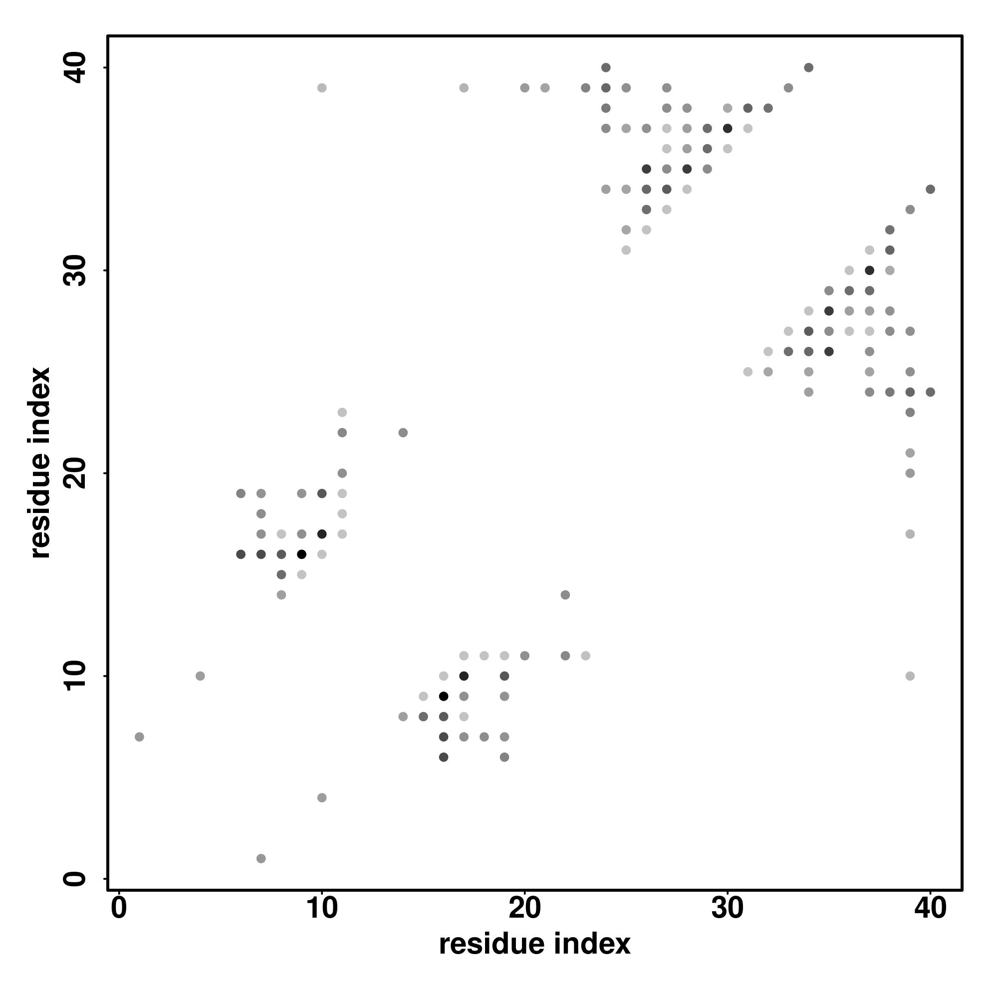 For the contact map, each dot represents a residue pair with predicted contact,