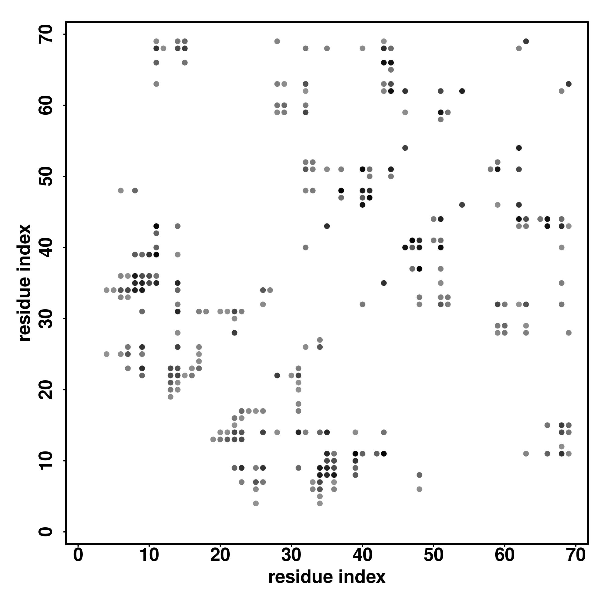 For the contact map, each dot represents a residue pair with predicted contact,