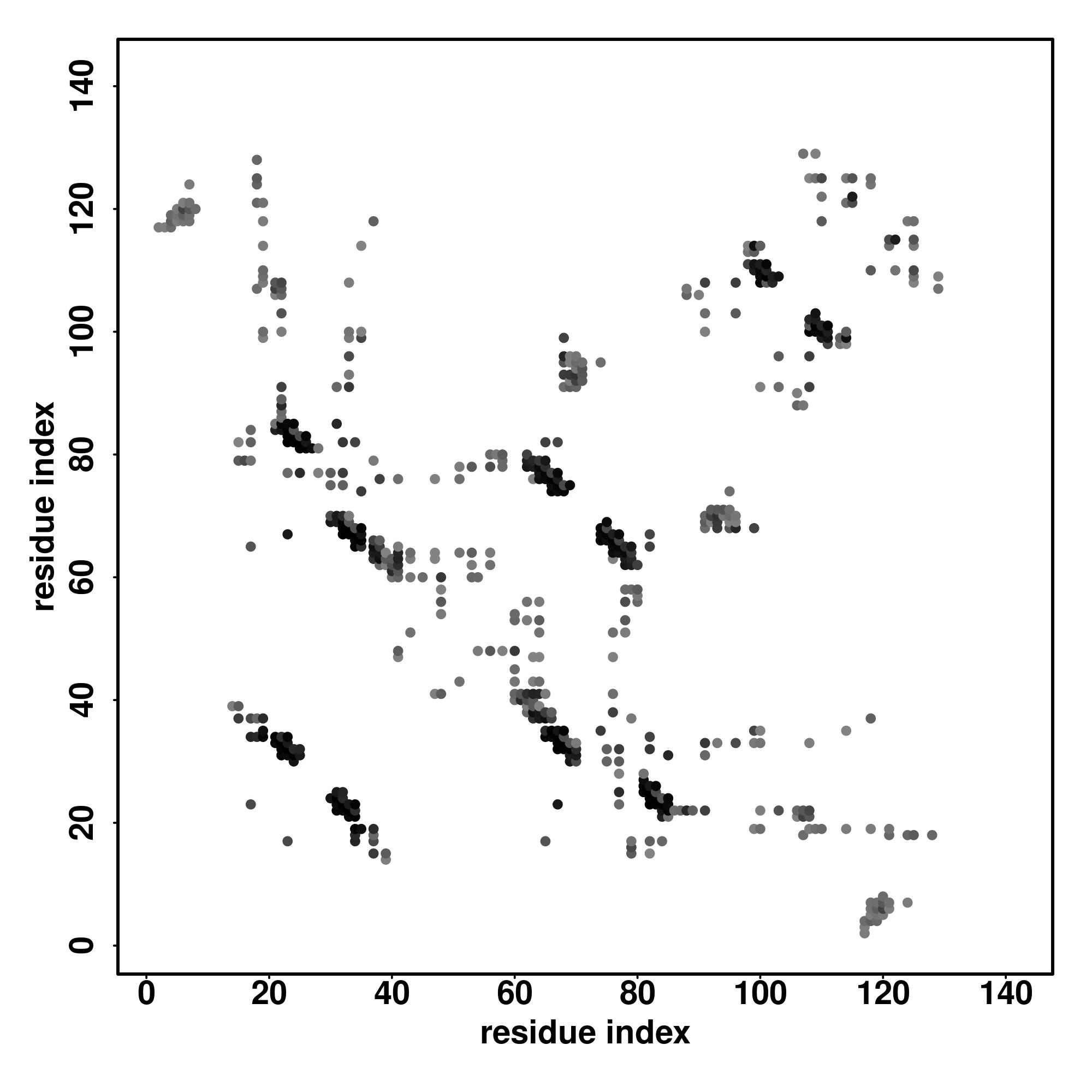 For the contact map, each dot represents a residue pair with predicted contact,