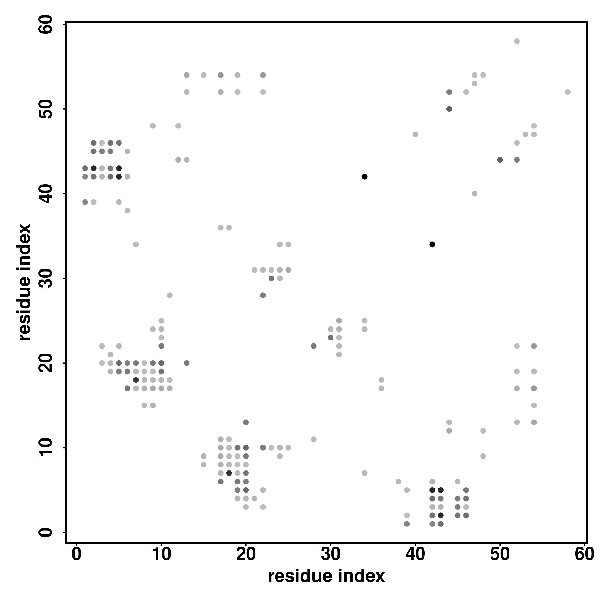 For the contact map, each dot represents a residue pair with predicted contact,